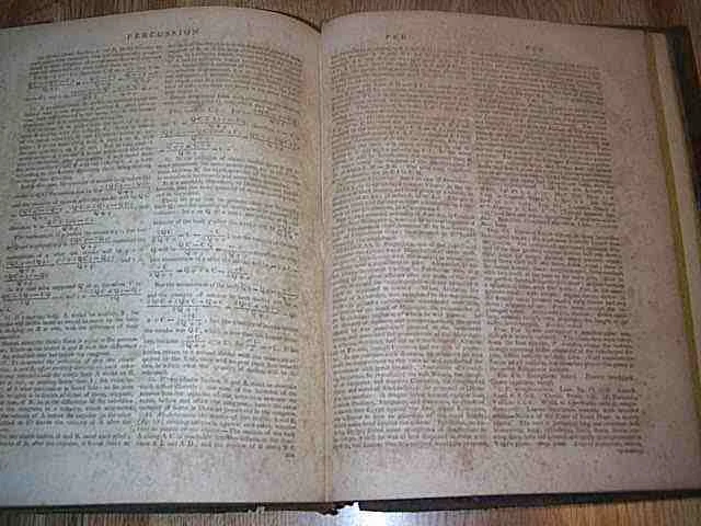 The Cyclopaedia; or, Universal Dictionary Of Arts, Sciences, And Literature by Abraham Rees, D.D, F.R.S., F.L.S., S. Amer. Soc. With The Assistance Of Eminent Professional Gentlemen. Illustrated With Numerous Engravings By The Most Distinguished Artists. First American Edition, Revised, Corrected, Enlarged, And Adapted To His Country, By Several Literary And Scientific Characters. In Forty-One Volumes. VOL. XXVII. (ONLY Volume 27 is being sold). Published by Samuel F. Bradford and Murray, Fairman & Co., Philadelphia. There is no stated publishing date----circa 1810 ????????????. The book has full leather cover. The cover is in average condition because of moderate wear and light soiling. The front cover hinge is broken. The back cover hinge is broken. The spine cover is tight and binding is good. The pages are good but have yellowed slightly and have a little foxing. Several pages have moderate foxing. Several pages have heavy foxing. There are several ownership stamps. There is an ownership plate on the front inside cover. There is a library plate on the front inside cover. The first 3 pages have loosened. There is ONLY 1 illustration---see pic. The endpapers are marbled. ******Checkout my other listings for The Cyclopaedia Vol 24 and The Cyclopaedia Vol 27 Book is approx. 9 x 11 inches. Buyer to pay for media shipping, UNLESS INTERNATIONAL. Will ship immediately with pay pal payment. Payment is expected within 3 days after notification. Checkout my other book auctions and save $$$$$$ on shipping. For to me, to live is Christ, and to die is gain.---Philippians 1:21