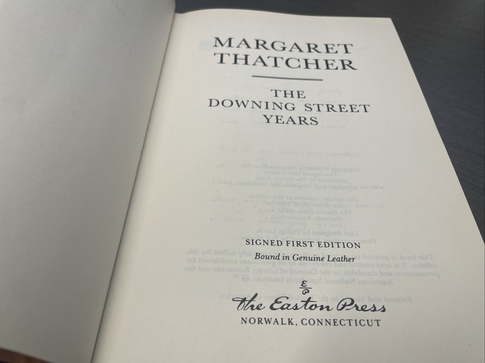 This is a mint copy of the Easton Press edition of The Downing Street Years. Signed 556 of 2000. I received these books from an elderly collector. Please see other listings for additional Easton Press books.