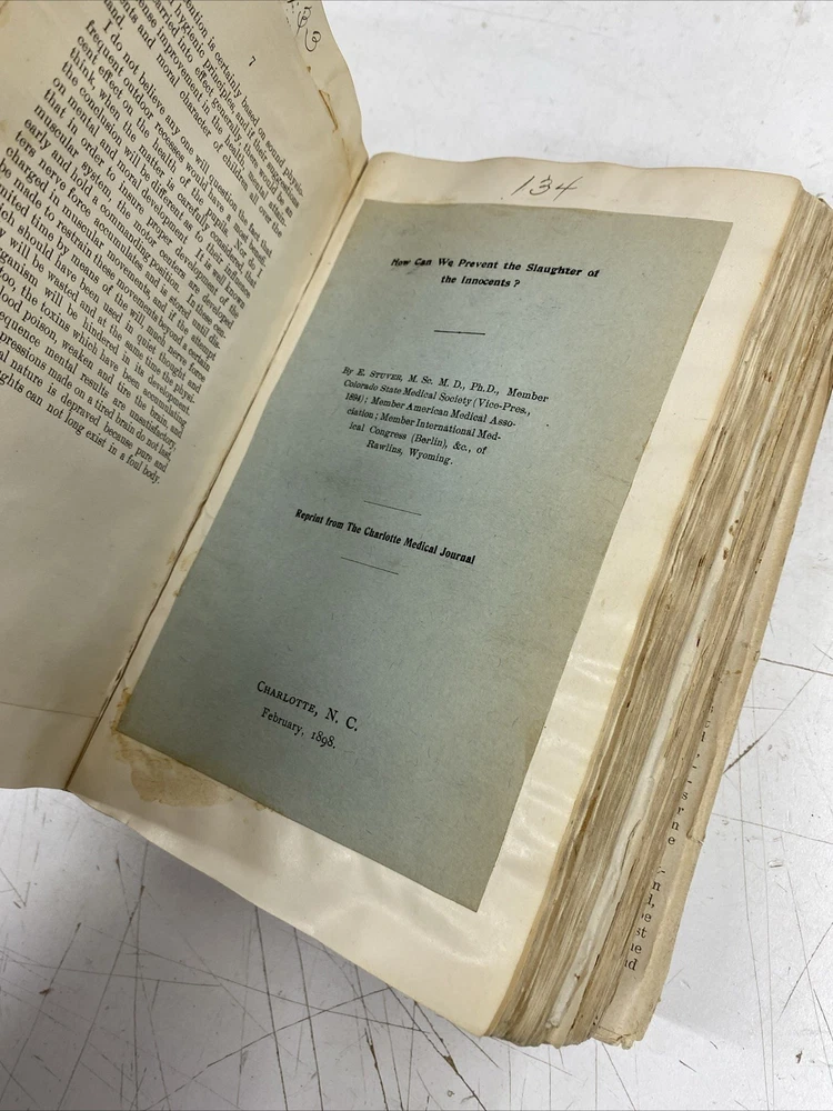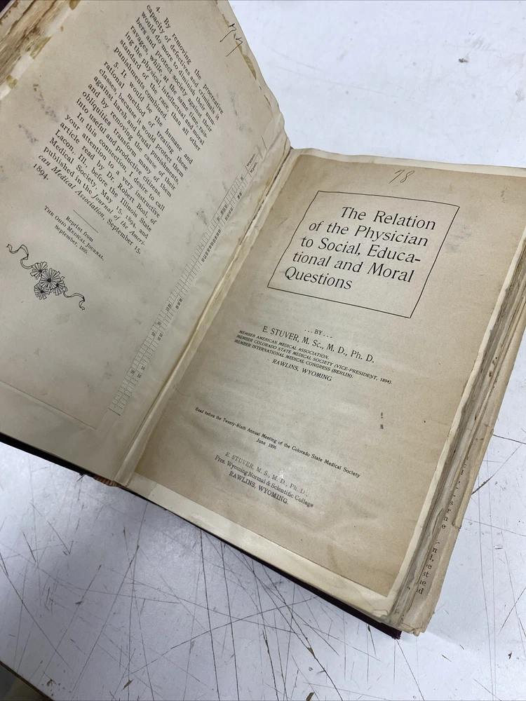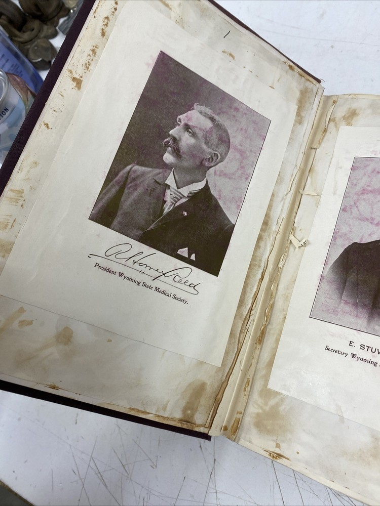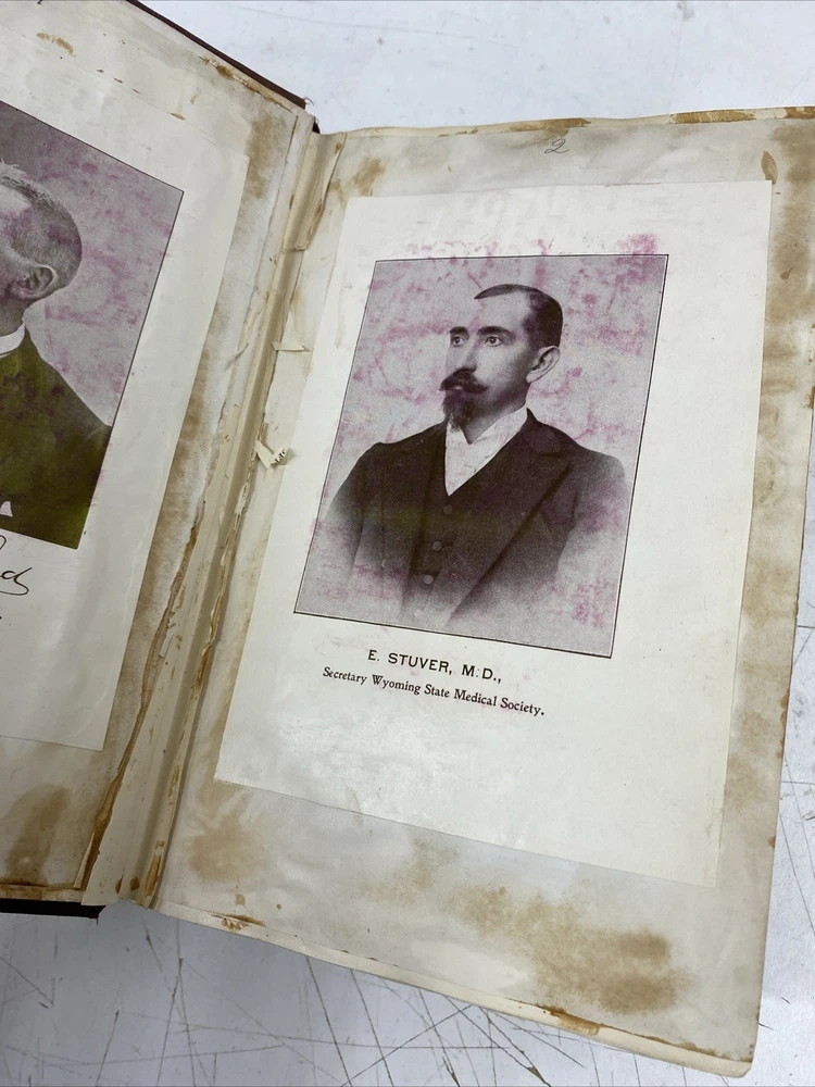Very unique book Looks to be the personal addition of E Stuver MD who was the secretary Wyoming State medical Society Lots of pasted articles within the Pages