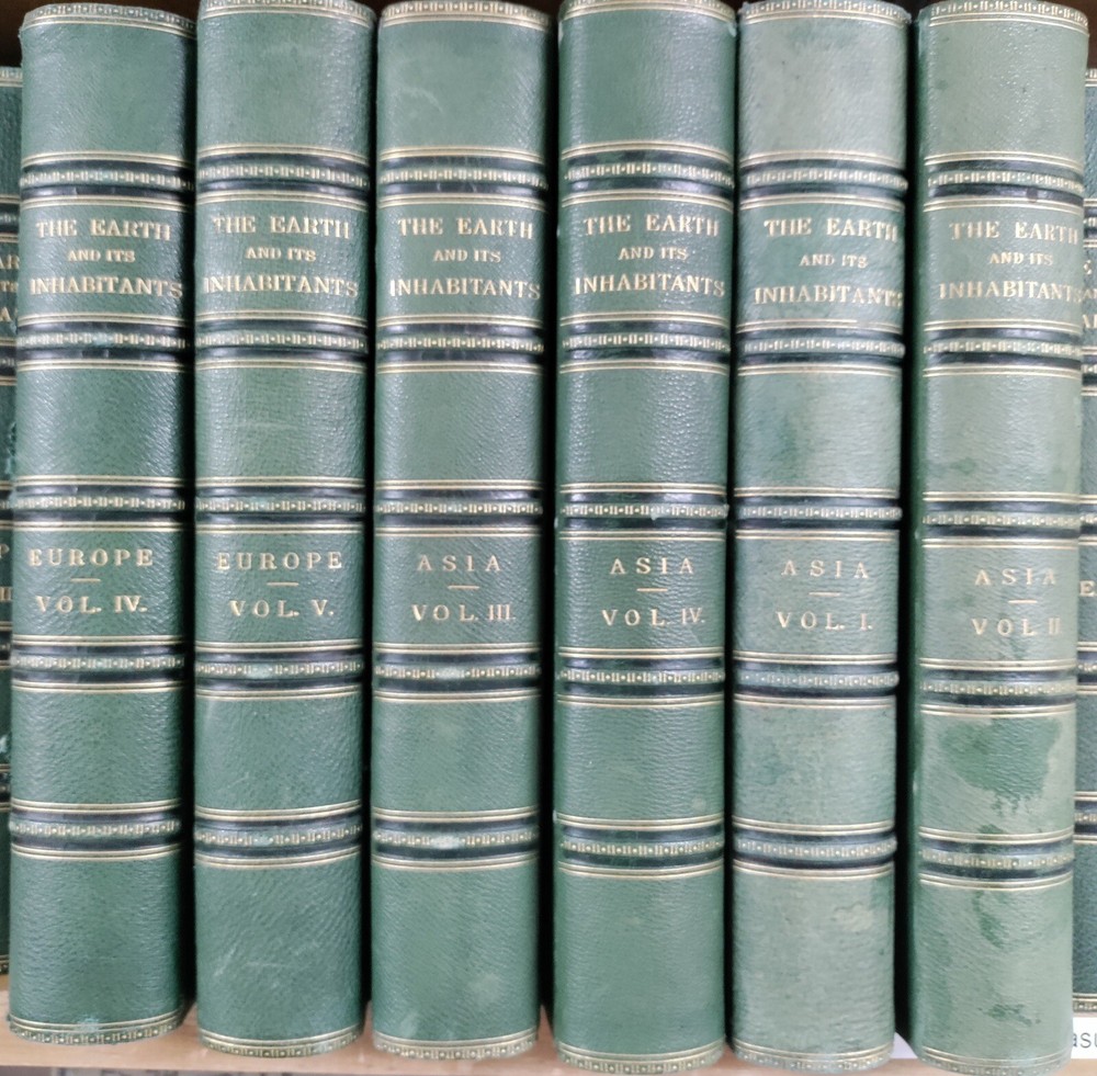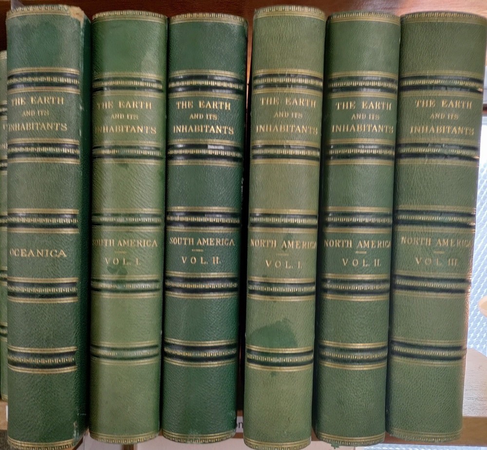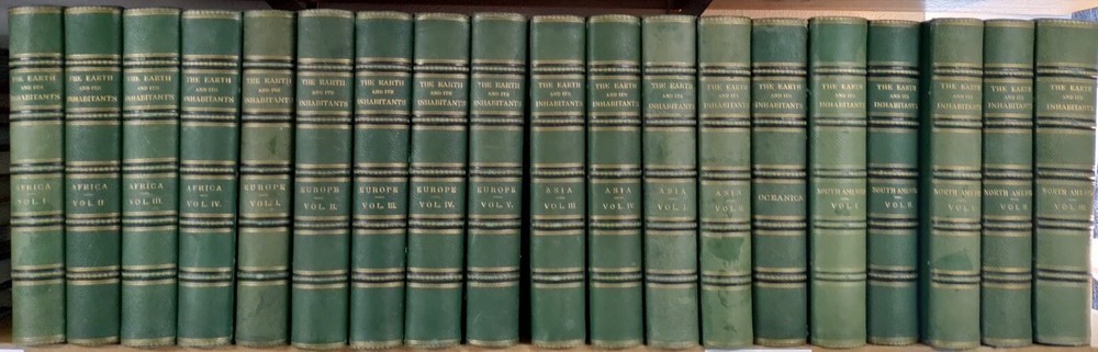 The Earth and Its Inhabitants Complete 19 volumes by Elisee Reclus 1886. The books are in excellent condition and are scarce. They all come in green bindings.