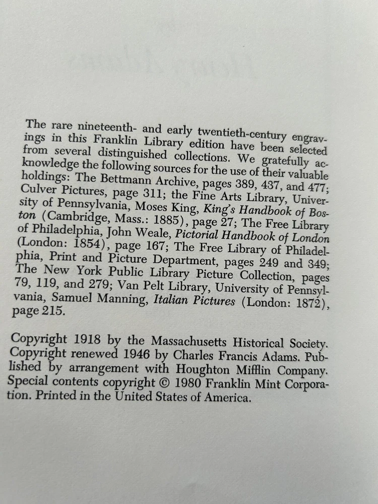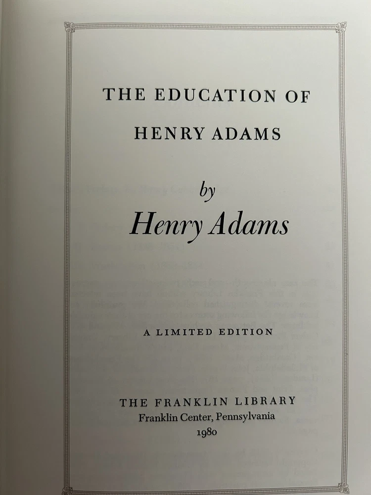 This limited edition book from Franklin Library is a must-have for any collector or fan of Henry Adams' biography. The Education of Henry Adams is bound in beautiful leather accented with 22 kt gold and features special attributes that make it a unique addition to any collection. The book was published in 1980 and is written in English. It covers topics related to Henry Adams' biography and history and is a great addition to any collection.. Book has gilded page edges. Endpapers are Moire fabric with satin ribbon marker. This book is 44 years old but still looks new. Clean, unmarked pages. This is a limited edition published by the Franklin Library. Please check out the photos.