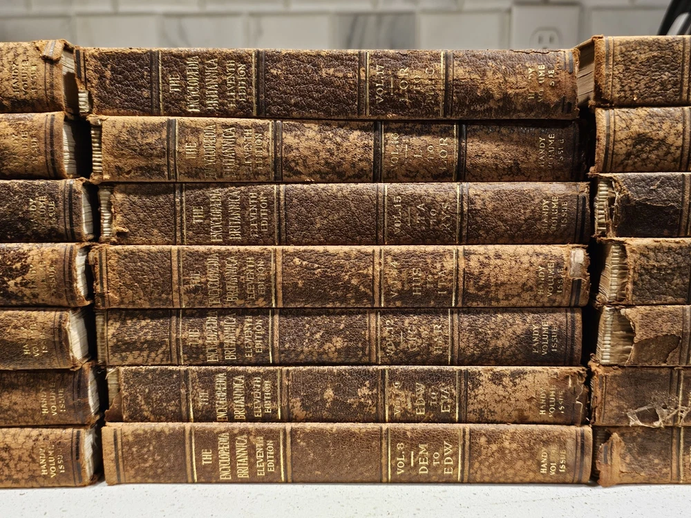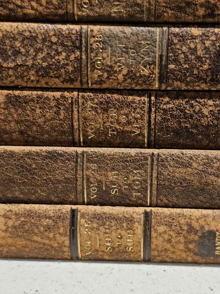 The Encyclopaedia Britannica Eleventh Edition 1911 New York Leather Incomplete is a luxury collector's edition encyclopedia published by Encyclopædia Britannica Inc. in the United States. This original 1911 edition features various authors and is elegantly bound in leather, making it a valuable and sought-after piece for collectors. The book is illustrated and contains maps in great condition, adding to its appeal as a reference work on a wide range of topics. Only missing 3 Volumes, 10, 11 and 13.