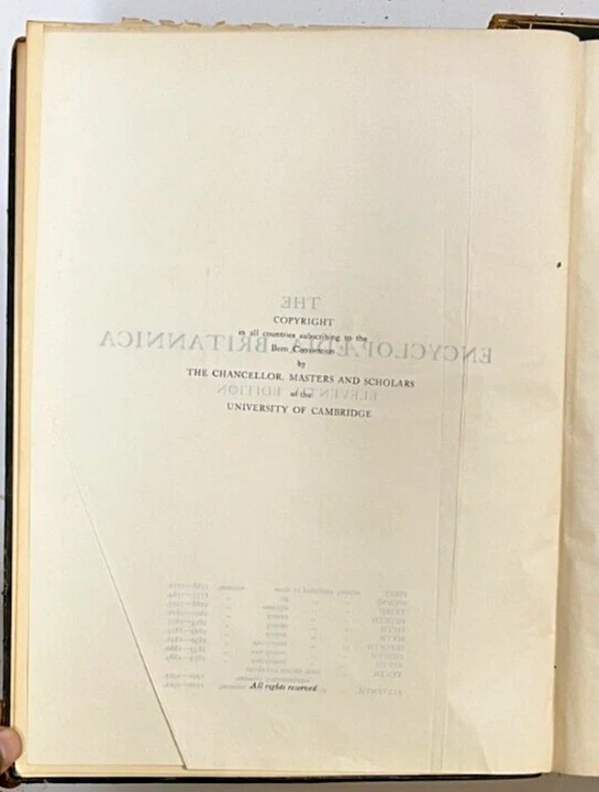 The Encyclopedia Britannica , 11 th Edition . Published by Cambridge University (1910) A set of The Encyclopedia Britannica , a general knowledge English encyclopedia widely utilized as a reliable and vast source of information, 29 Volumes.