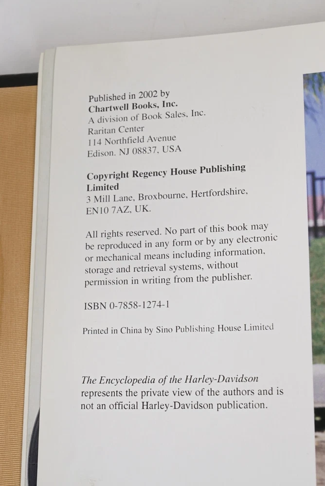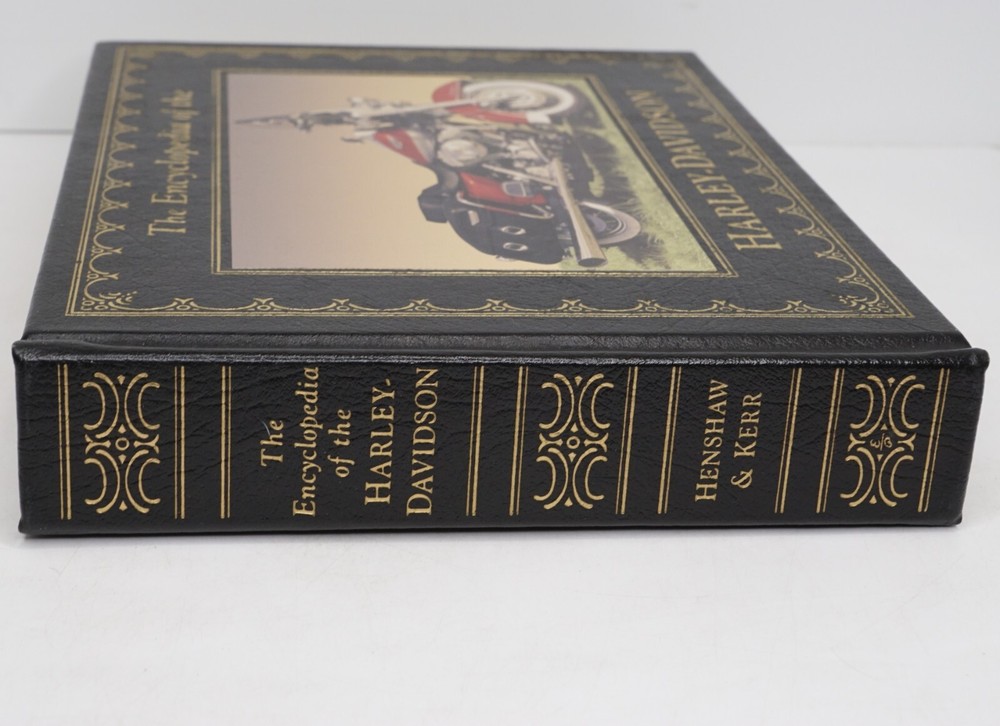 The Encyclopedia of the Harley-Davidson by Peter Henshaw & Ian Kerr | 2002 | Chartwell Books | Leatherbound Hardcover | Special Edition Excellent copy with a sturdy binding, light shelf wear, gilded leather covers & page ends. See photos for details. | You will receive the actual item pictured. PAYMENT POLICY Immediate payment is required upon selecting "Buy It Now" or upon checking out through the cart. Payments are handled through eBay Managed Payments. This allows you to pay with credit, debit, and gift cards, Apple Pay, Google Pay, PayPal, and PayPal Credit. Thank you for shopping with us on eBay! SHIPPING POLICY We take great care packaging every item to ensure safe shipment to you. WE SHIP QUICKLY! Items often leave the same day but normally the next business day. FEEDBACK Our eBay reputation and your satisfaction are important to us. As long as you are happy with your purchase, please leave us positive feedback. We will leave positive feedback for you in return automatically. If you have any problem with your order, please do not leave negative feedback. Message us ASAP and we will work to make sure your issue is resolved quickly. INTERNATIONAL ORDERS International orders are available through the eBay Global Shipping Program. ABOUT US We tend to list mostly pieces from our own collections...but also little treasures we run across in our adventures... Be sure to Check Out Our Other Listings.