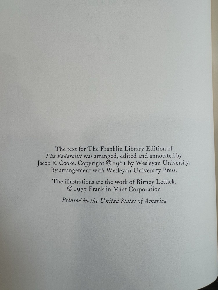 The Federalist ~ Alexander Hamilton ~ James Madison ~ The Franklin Library 1977 with editors notes (Nancy 59)