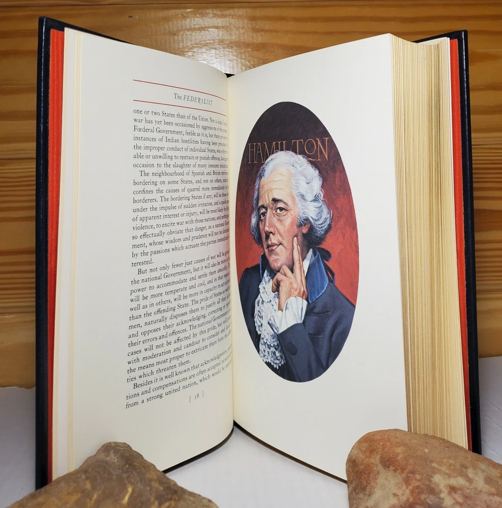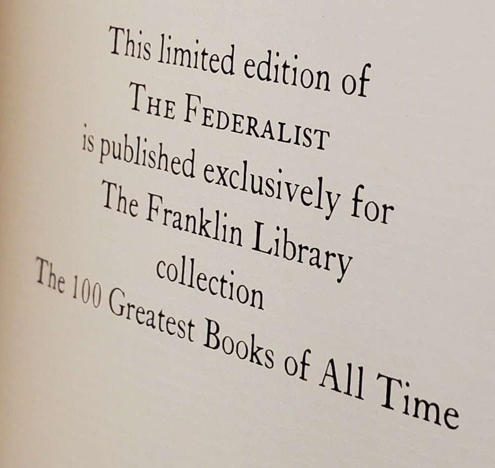 . . . . THE FEDERALIST Alexander Hamilton James Madison John Jay Published by Easton Press, 1977 Hardcover. First Edition; First Printing. Near Fine. Leather bound, Accented in 22kt gold. Printed on archival paper with gilded edges. The endsheets are of moire fabric with a silk ribbon page marker. Smyth sewing and concealed muslin joints. This book is in full leather with hubbed spines. A Limited Edition. Overall very good condition. Please view all of our listed photos. Thank you! OUR EBAY STORE : RareBooks&Music716 - This particular collectors item is from a well cared-for collection of over 4,500 different titles that we are currently working on putting online for sale. - Please see all photos for this items specific condition / edition / publisher. - Visit our Ebay Seller Profile Page to view all of the spectacular Books, CDs, DVDs, Vinyls, and other great collectibles that we currently have listed for sale. - We ship items securely every day with USPS First Class, Media, and Priority Mail. - Returns accepted within 30 days. - ENJOY !