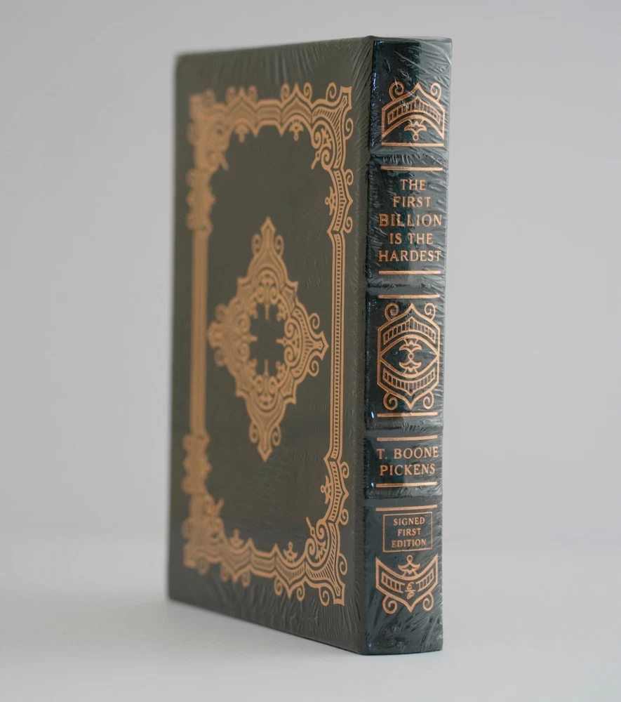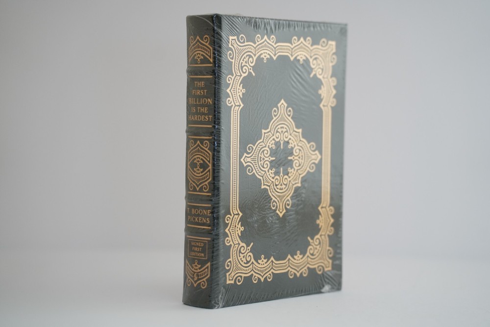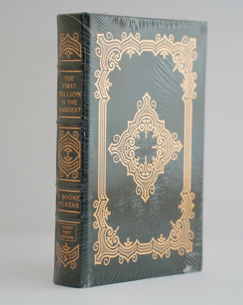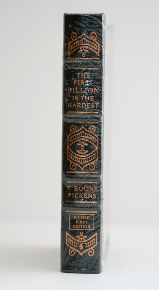 The First Billion is the Hardest by T Boone Pickens Includes all the classic Easton Press qualities: * Premium Leather * Silk Moire Endleaves * Distinctive Cover Design * Hubbed Spine, Accented in Real 22KT Gold * Satin Ribbon Page Marker * Gilded Page Edges * Long-lasting, High-Quality Acid-neutral Paper * Smyth-sewn Pages for Strength and Durability * Beautiful Illustrations IMPORTANT * Only ship to the lower 48 States. * Photos are of the actual item for sale. * Ask for more photos BEFORE the item before you buy. * ALL my books are carefully stored inside in a smoke free environment. * I have almost 50 books on eBay at this time, so please feel free to browse! * ALL my books are shipped in a protective manner! See my buyer's comments.