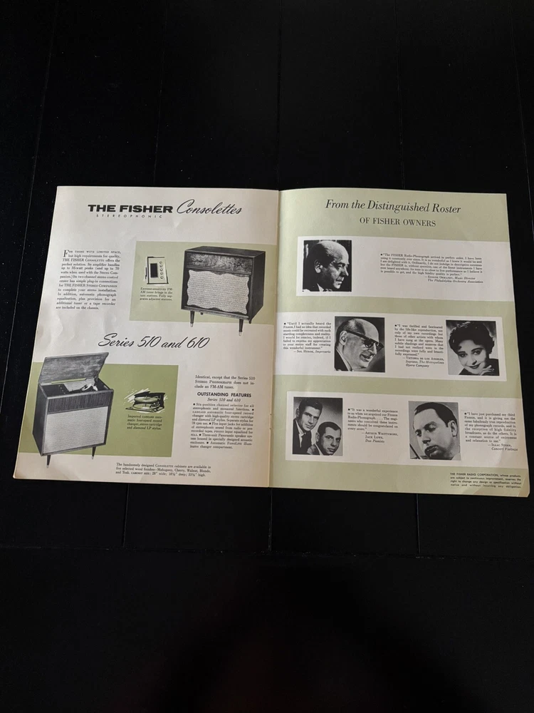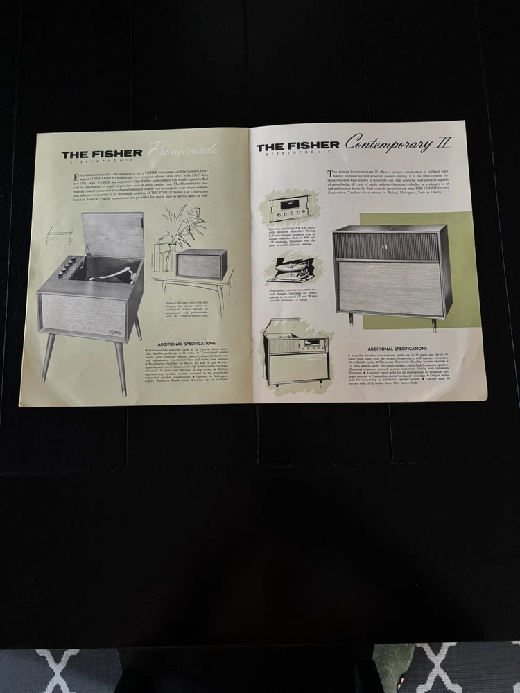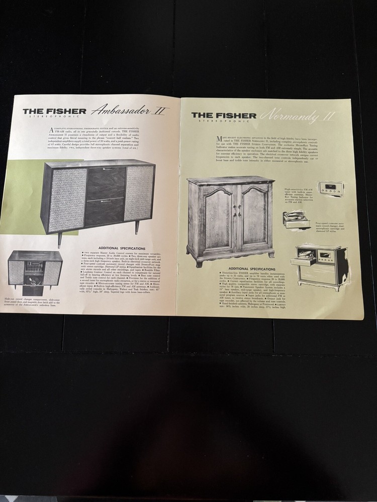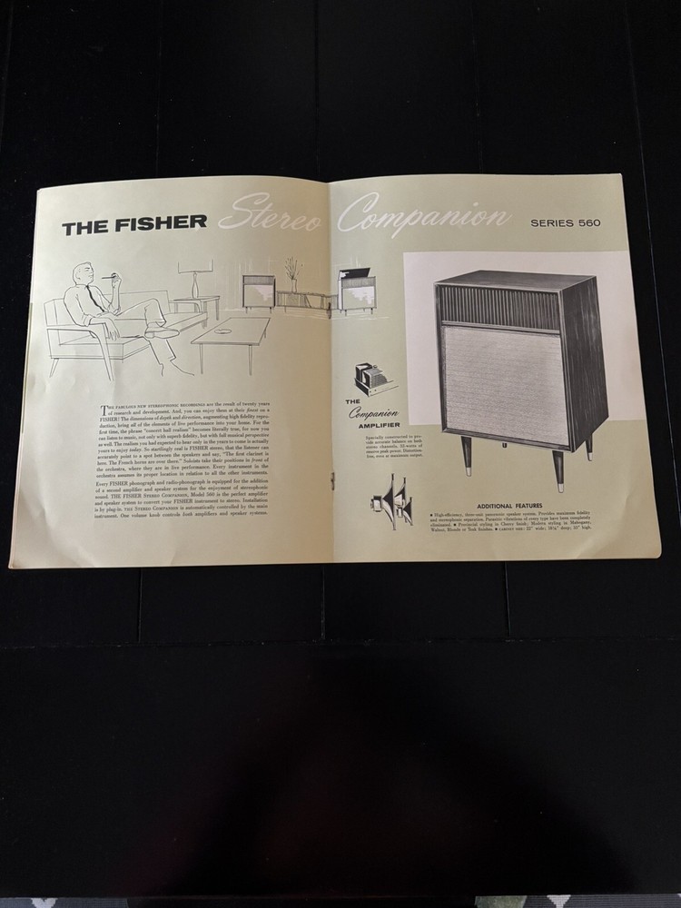 This is a vintage catalog brochure for the Fisher 1959 Stereo Phonograph. It provides a glimpse into the audio equipment of the past and is a great piece for collectors and enthusiasts alike. The brochure features detailed information about the Fisher phonograph, including its features, specifications, and pricing. It is a must-have for anyone interested in vintage audio and is sure to be a conversation starter. From a smoke free home. Shipped with USPS.