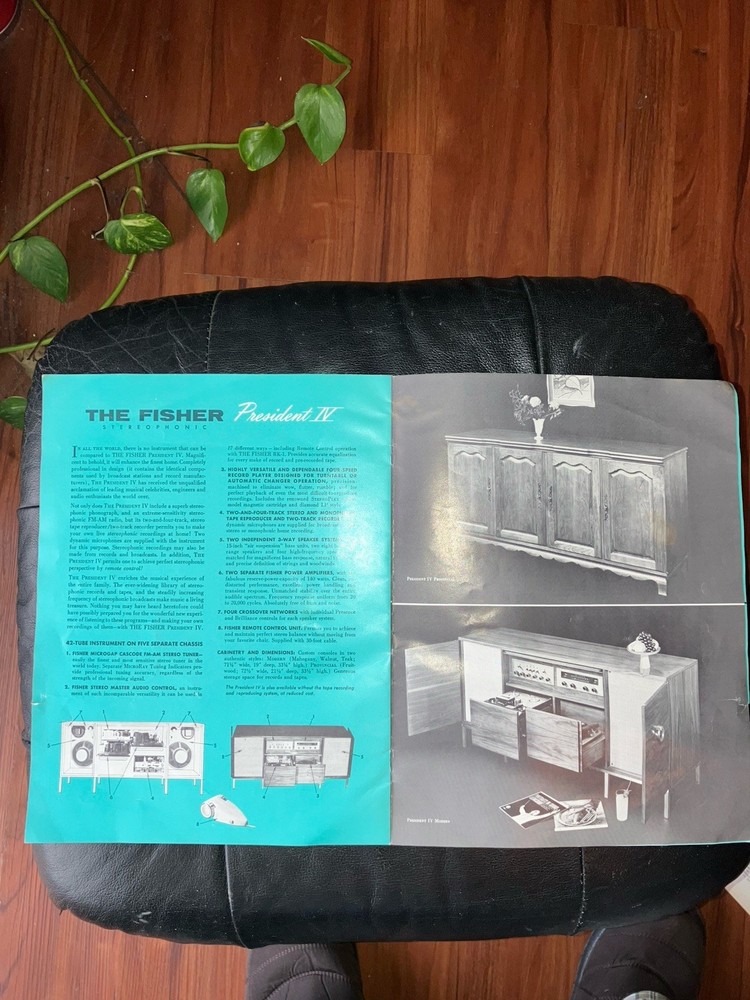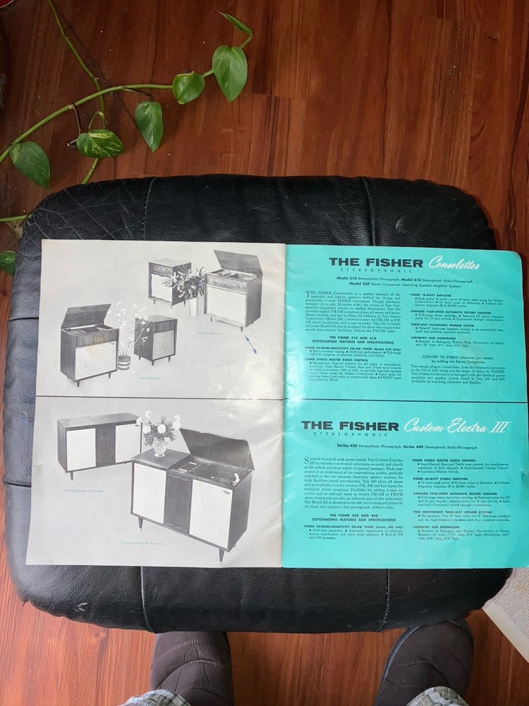 The Fisher 1960 - worlds foremost Stereophonic high fidelity radio phonographs is very old original & collectible Consoles and units inside available back in 1960 including a forward by Avery Fisher one of the pioneers in high fidelity and founder 14 pages ver good -nice condition and over 60 yrs old Been having these for many years were used by me and are old…not from a professional seller / printer. Real deal- Downsizing my personal large vintage audio manual collection Longtime eBay audio seller & audiophile user No surprises, no worries- low price! $4.19 ground advantage save $ (cheaper than media) Thanks for looking 🇮🇱✌️