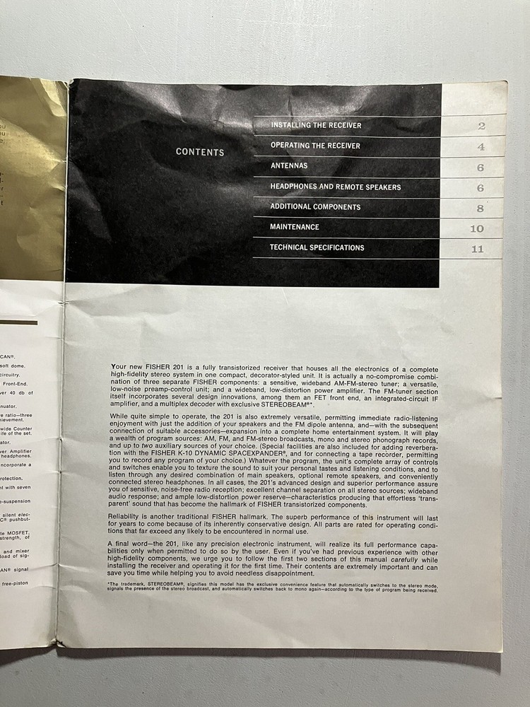 Title/Info: The Fisher 201 Operating Instructions Stereophonic AM-FM Receiver Vtg Bklt. 1970. Paperback. Stapled binding. 11 pages. 8.5" x 11" Additional Info: Exactly the same as pictured. Scans may not pick up all flaws. (Misc 101.0.50)