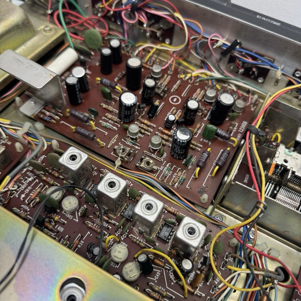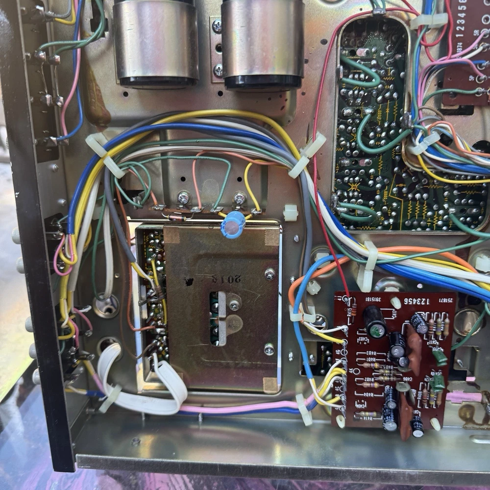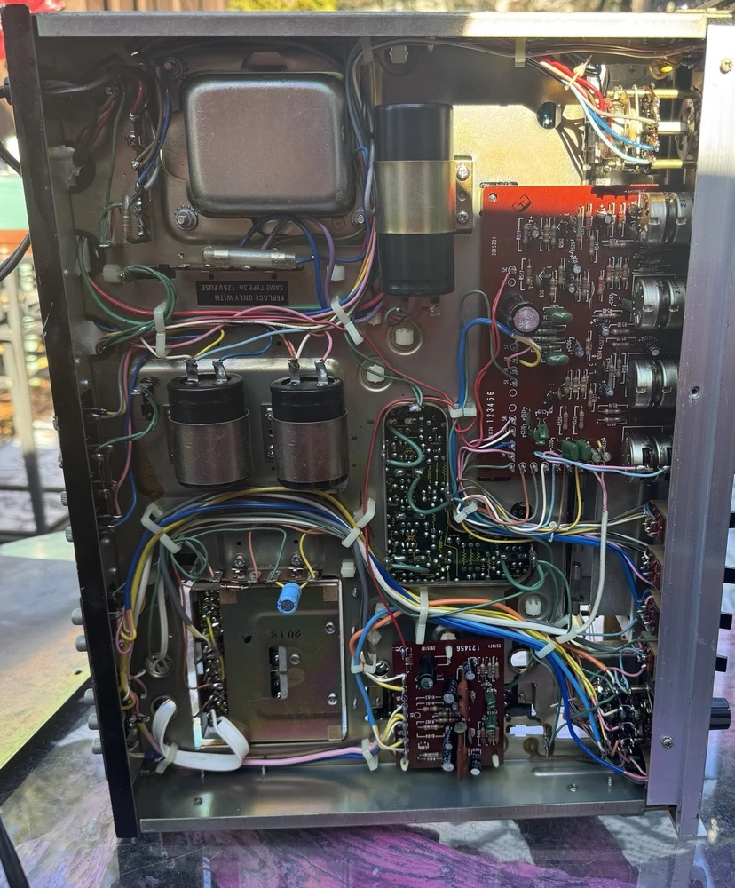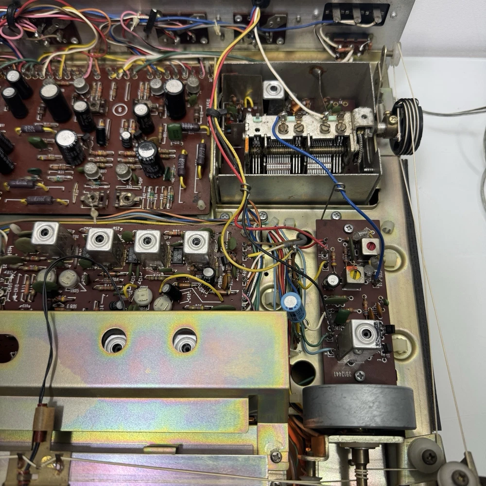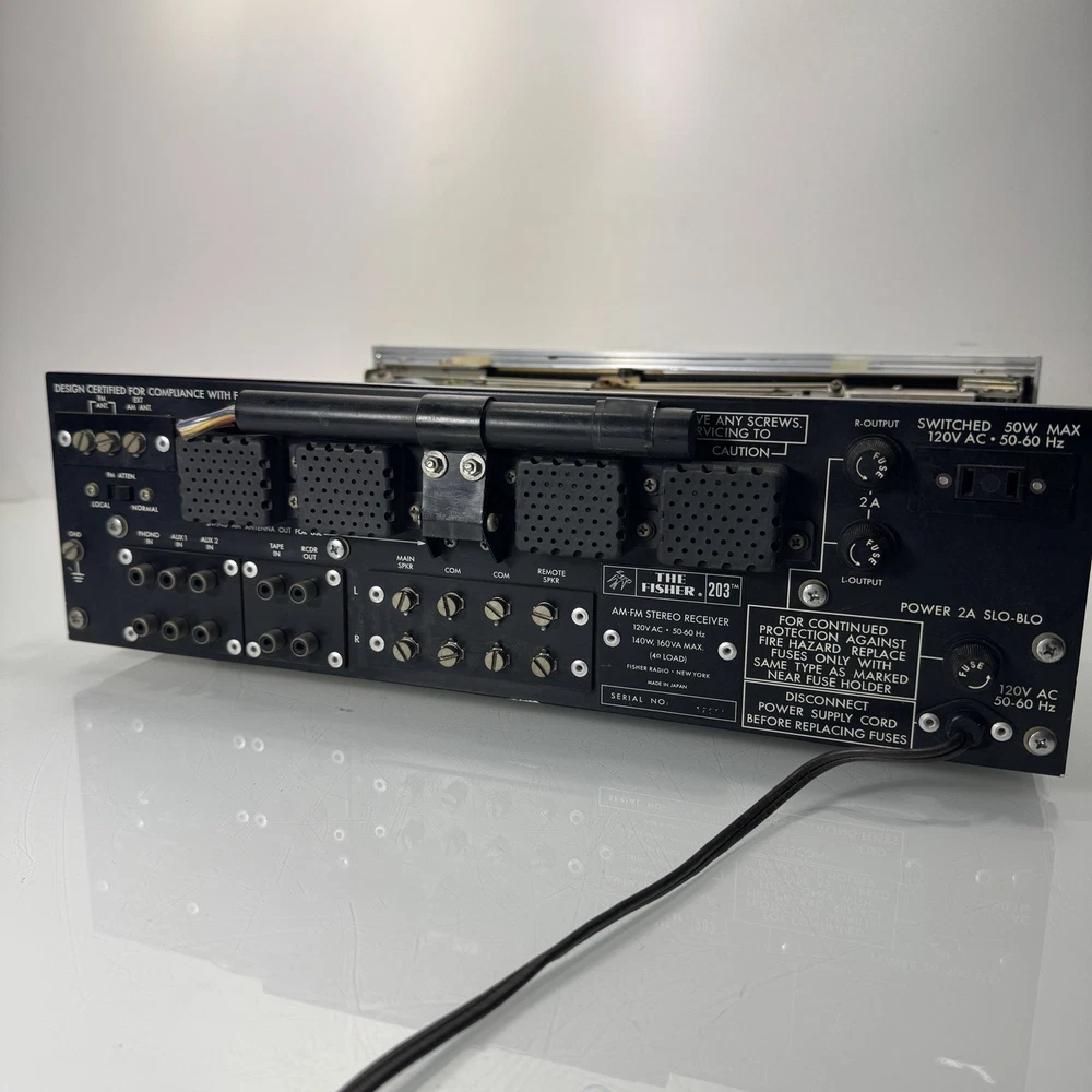 The Fisher 203 Stereo Receiver 30 WPC Turntable Ready Cleaned and Serviced Good overall condition - we have opened this unit up, Checked all the boards, banished the dust, cleaned the Pots, the Knobs, and shined up the Metal Face. No Electrical issues, we replaced a few of the lights, 1 on the signal meter, 5 along the Radio Dial, There is a set of lights for the tuning needle and the for the source selector. We did not replace those lights - they require a bit more surgery. Also the power/speaker selector is missing the writing around it, as well as the volume knob, and the source selector is starting to fade - see photos. ****updated 3/28/25***** Signal Lights replaced