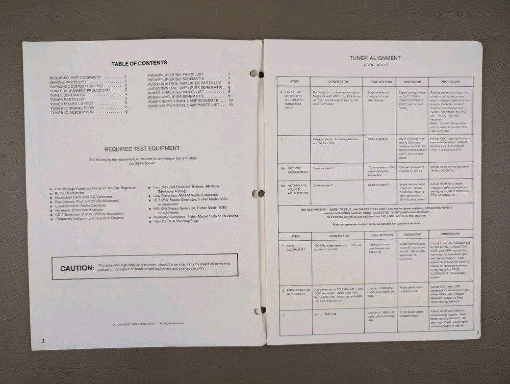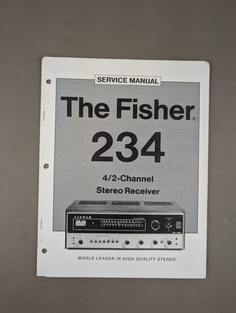 The Fisher 234 4/2- Chanel Stereo Receiver Service Manual This manual/schematic is gently used and may have slight yellowing/patina. Corners and edges may have light wear, light bends. Professionally packaged between 2 cardboard stock sheets and placed inside of a plastic sleeve inside of mailer for effective protection in shipping. No P.O. boxes please!