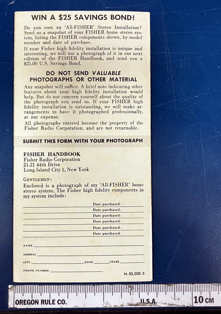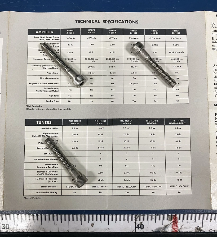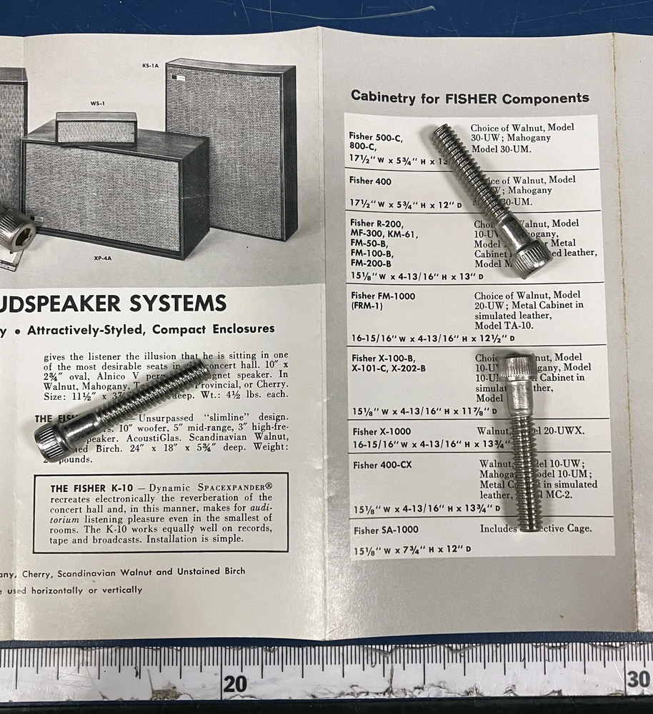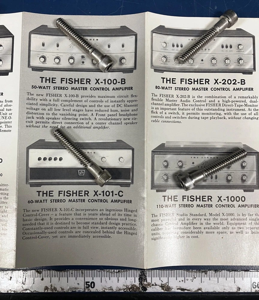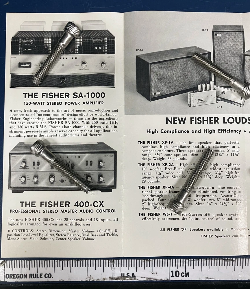 The Fisher 1963 Catalog "A Guide to Custom High Fidelity Stereo Components" is a vintage brochure that provides detailed information on custom high fidelity stereo components from the Fisher brand. This guide is a valuable resource for vintage audio enthusiasts looking to enhance their stereo systems with high-quality, unique components. With a focus on consumer electronics, this catalog ad offers a glimpse into the world of vintage audio technology and provides insights on how to create a customized and immersive listening experience. This item is in good condition. The ruler in the photos is in metric units and please note that the folded brochure is 'pocket sized'. The screws in the photos are not included. The item will be shipped in a small box to prevent any damage.