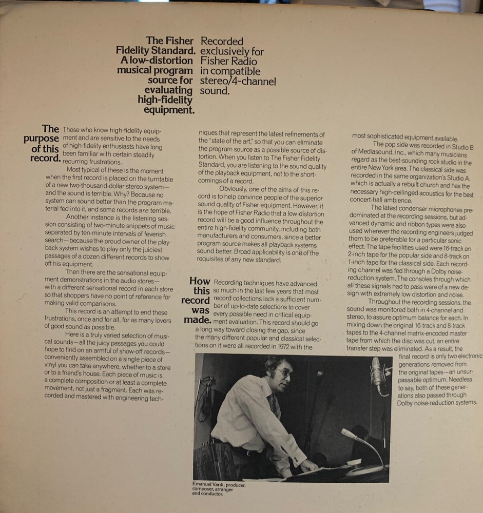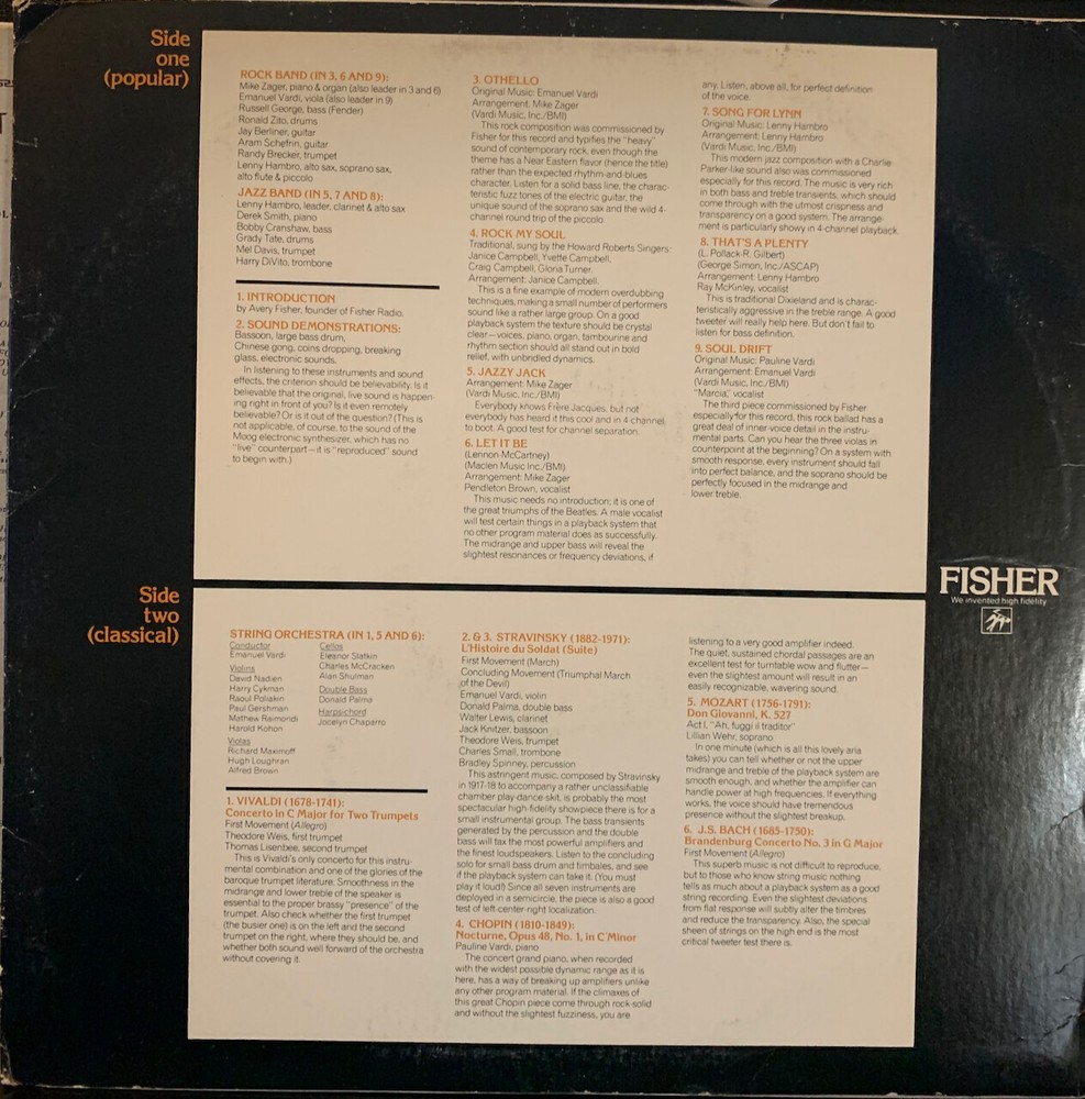 Super Hi Fi pressing. One side is classical, other jazz and pop. Includes some well known musicians, including trumpeter Randy Brecker. Also some demonstration sound effects. Gatefold with notes Save on shipping when you purchase multiple records at check out from my store.