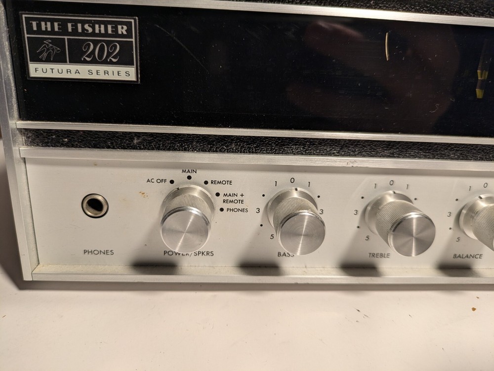 Used The Fisher Futura 202 AM/FM Stereo Receiver, tested with the radio and a speaker only. Some crackling with the volume when moving it up or down....