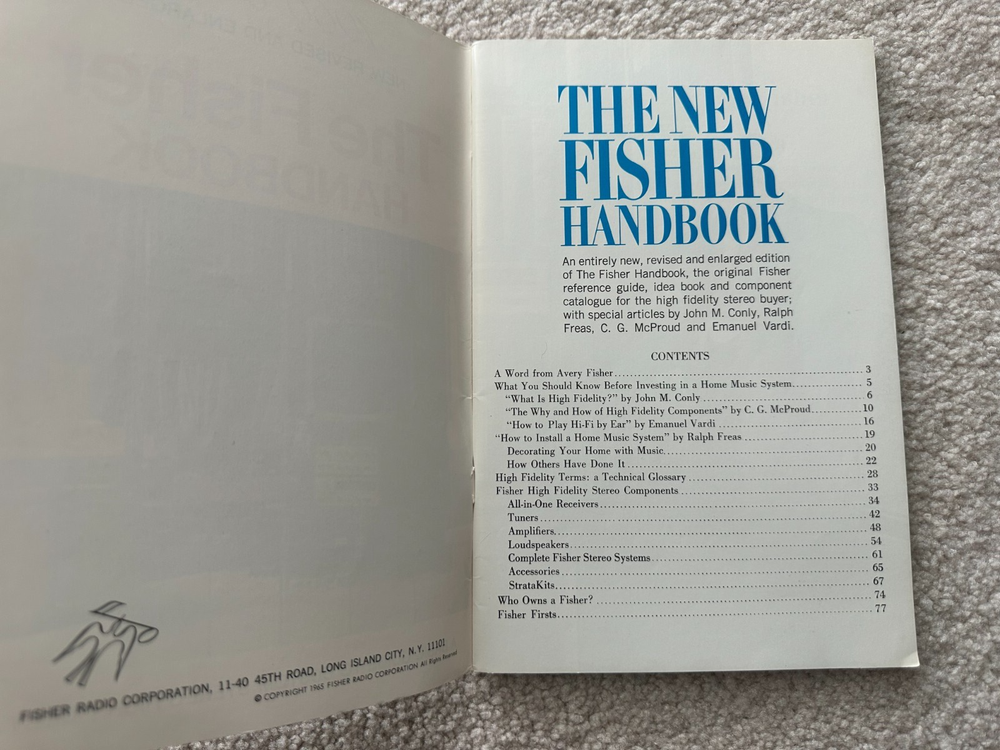 77 Page full product guide from Fisher for 1966. Excellent information about both general high fidelity systems, as well as the offerings from Fisher for that year. Avery Fisher and the Fisher company advanced the collective knowledge among consumers about high fidelity while advancing their own technology to meet the increasing demands for better music generating audio systems in the 60's and 70's. This catalog and glossary of terms is an great example of that contribution. Great coffee table exhibit and reading for the Fisher and Audio Collector to have. The pictures are part of the description. Be aware vintage print materials, paper and ink may have odor. SHIPPING: I typically ship same or next day. Packing and shipping is expensive, and I am not Amazon Prime, so shipping is not free. BEFORE YOU BUY, READ CAREFULLY: Selling AS IS. No Warranty is expressed or implied. NO Returns or refunds for any reason. No after-sale support is implied or offered.