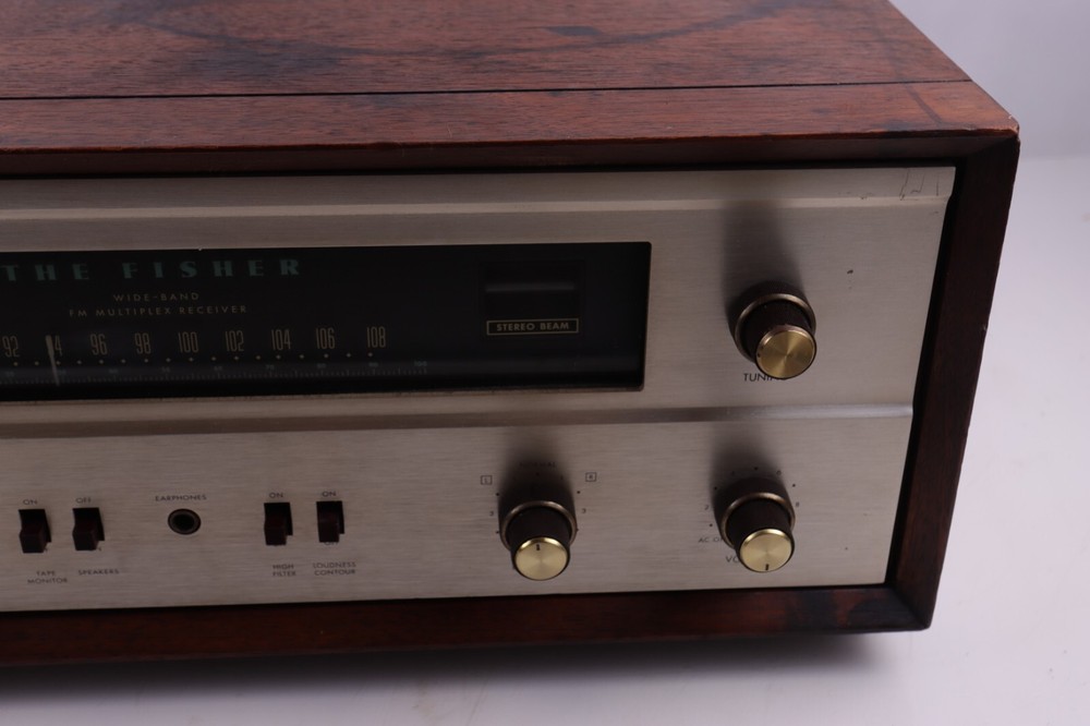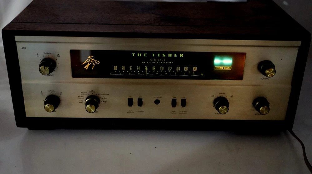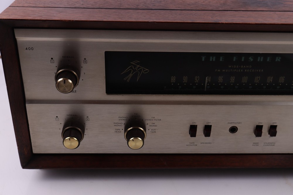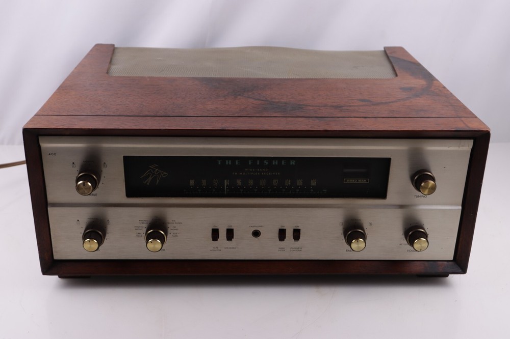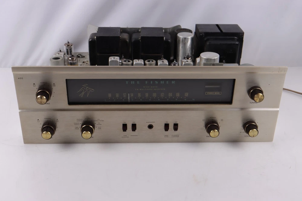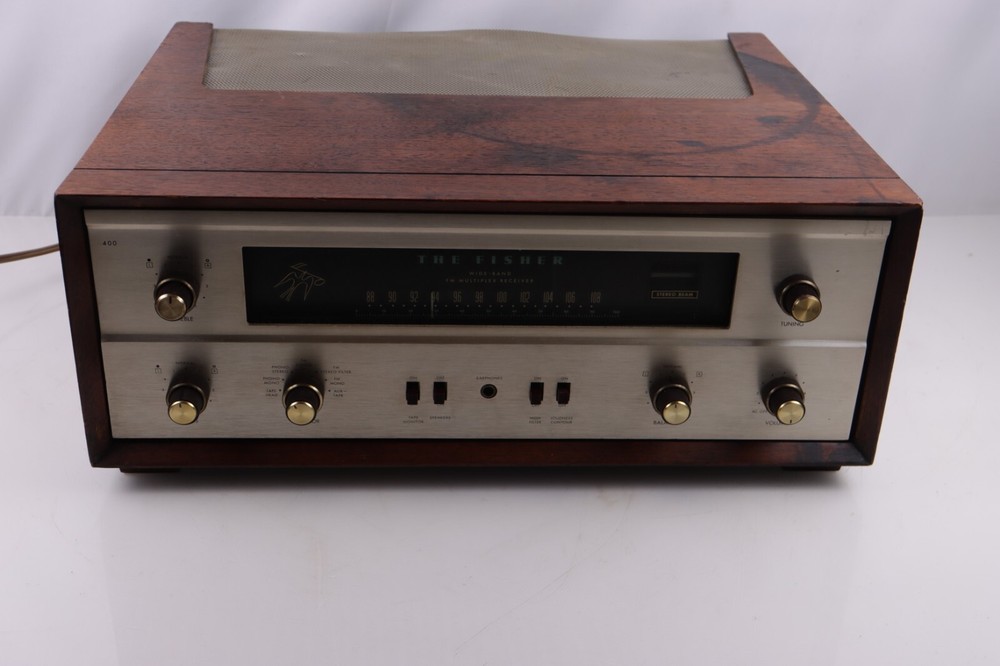 Description Fisher Model 400 Stereo Multiplex Receiver. The receiver works and sounds great. It looks very nice but could use some general cleaning. You may want to refinish the cabinet as it has some staining and a few nicks and scratches as well as a small hole in one side as shown in the images. The unit sounds very good. The 7868 output tubes are all branded as Fisher. Many of the 12AX7 preamp and tuner tubes are also branded as Fisher. The capacitors look to be all original so you will likely want to replace them for the sake of reliability, longevity and even better sound. The eye tube looks nice and bright. Overall, a nice unit that will make someone a great daily user with a little maintenance and restoration. Buyer pays $50 shipping in CONUS. Shipping Buyer pays $50 shipping in CONUS