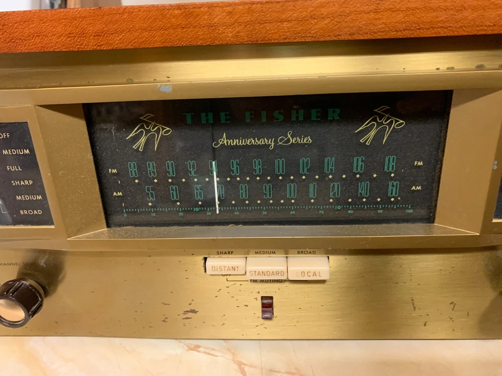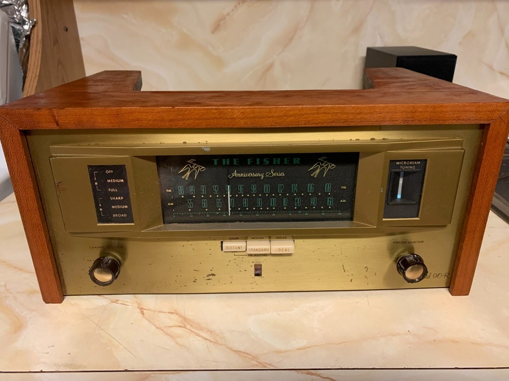 The Fisher Model 90-R Anniversary Series AM/FM Tuner is a vintage unit manufactured in Japan by Fisher. This particular model is known as Model Fifteen and is part of the Fisher brand. It is a high-quality tuner designed for audio enthusiasts, providing both AM and FM radio tuning capabilities. The tuner is in perfect working condition, making it a valuable piece for collectors and audiophiles looking to enhance their vintage audio setup with a reliable and authentic piece of equipment from The Fisher. The tuner contains vintage tubes.