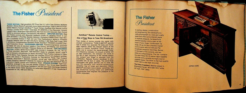 The Fisher Stereo Music Center & Radio Phonographs Catalog 1969 55 page booklet Make Papergoy your Trusted eBay Source for Ephemera. Please add us as a favorite seller and be sure to visit our store- with over 20,000 items...and growing! Track Page Views With Auctiva's Counter