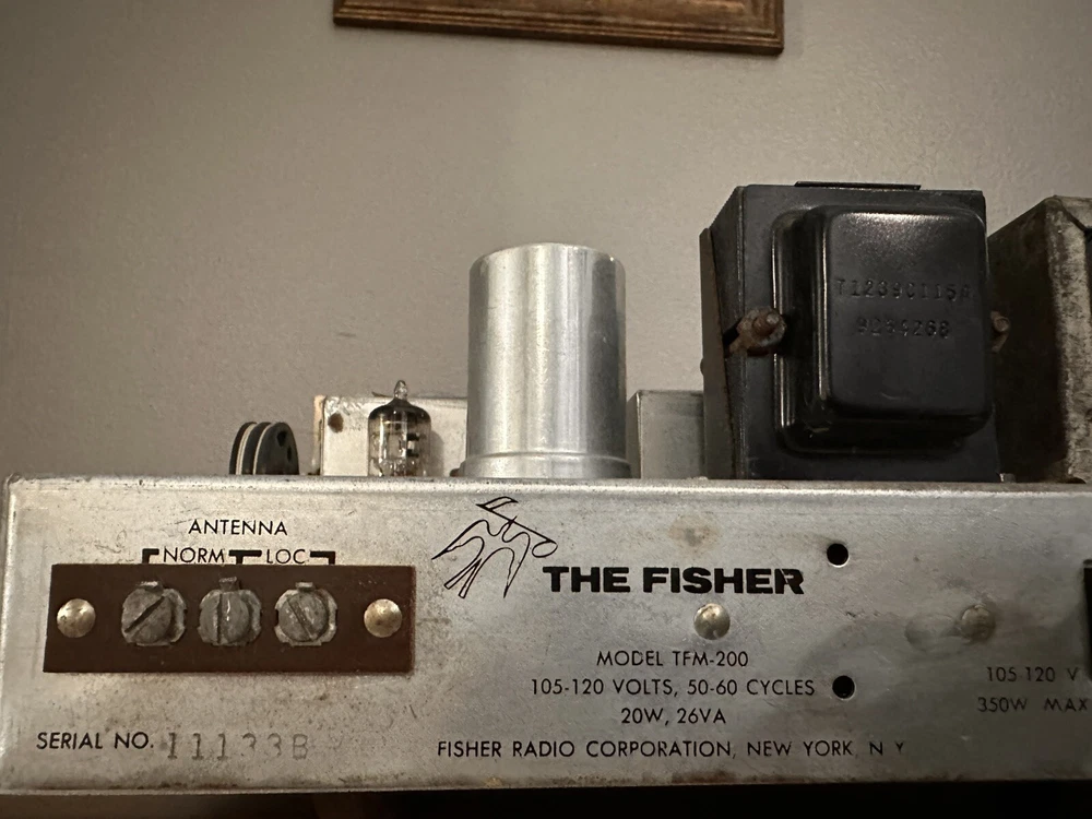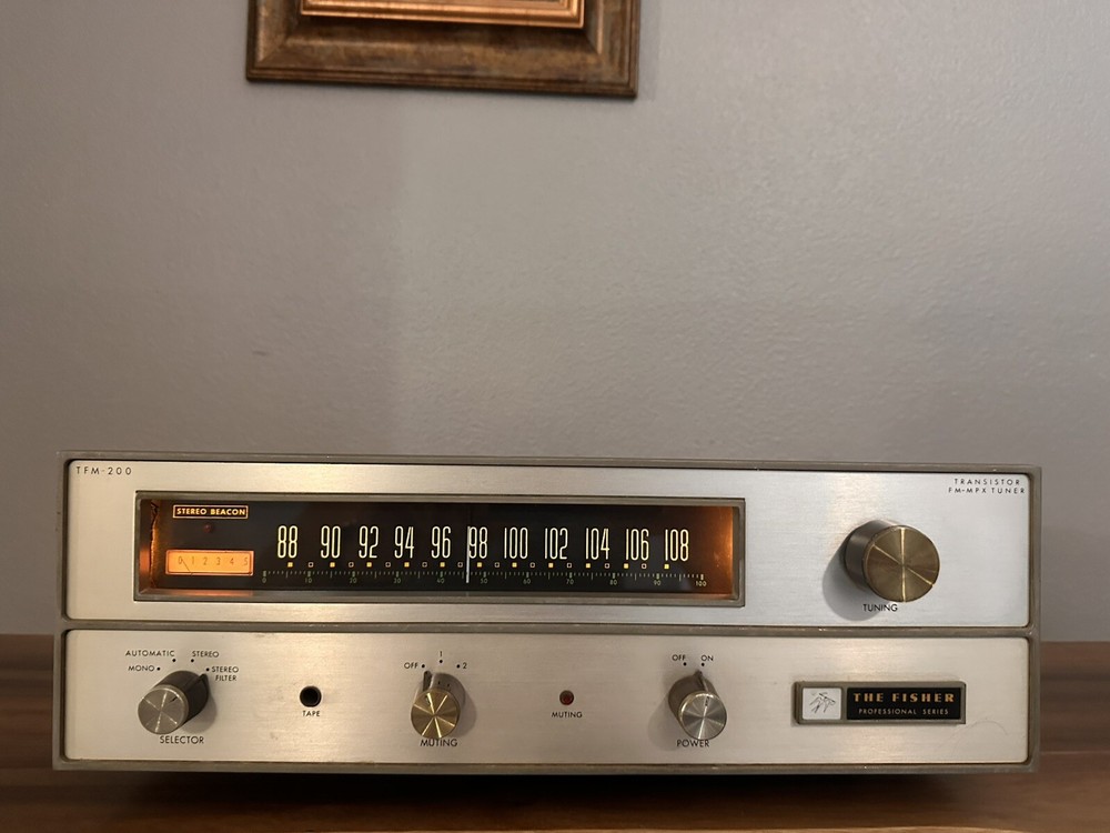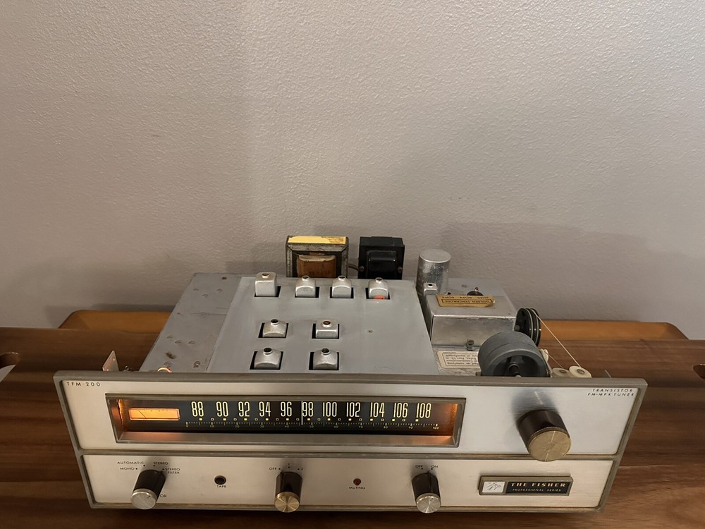 The Fisher TFM 200 Stereo Radio Tube Tuner. No shell. Works, Tested. Ships fast and secure. Wrapped, styrofoamed and double boxed for extra security.