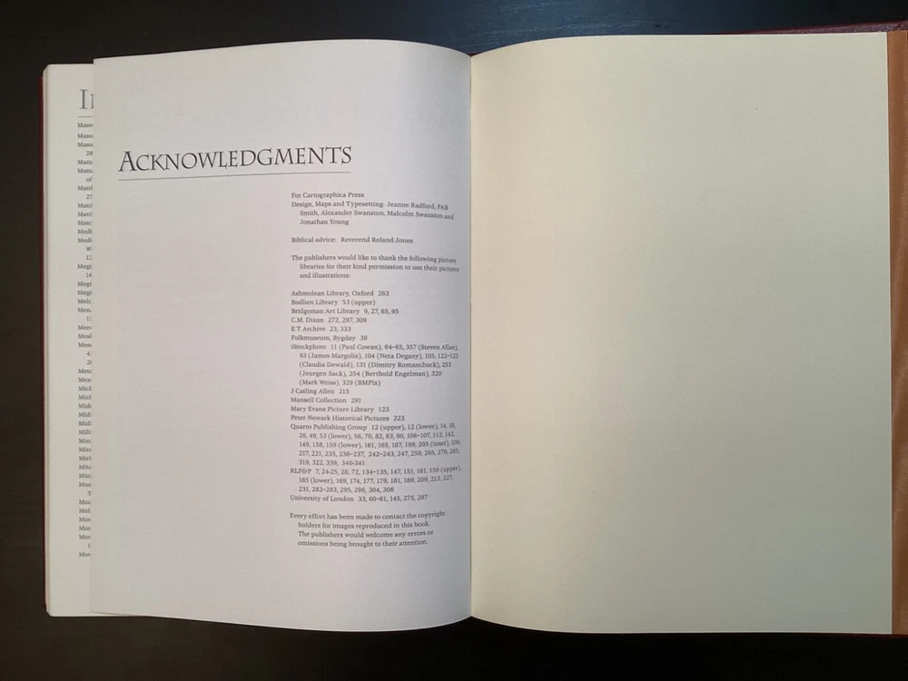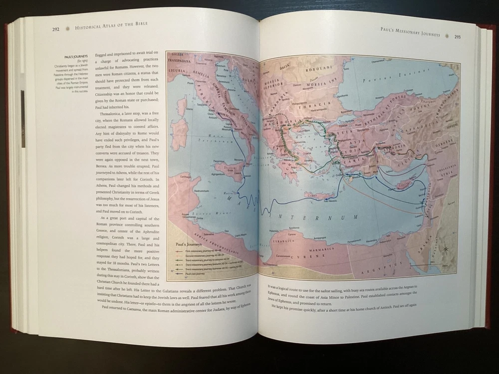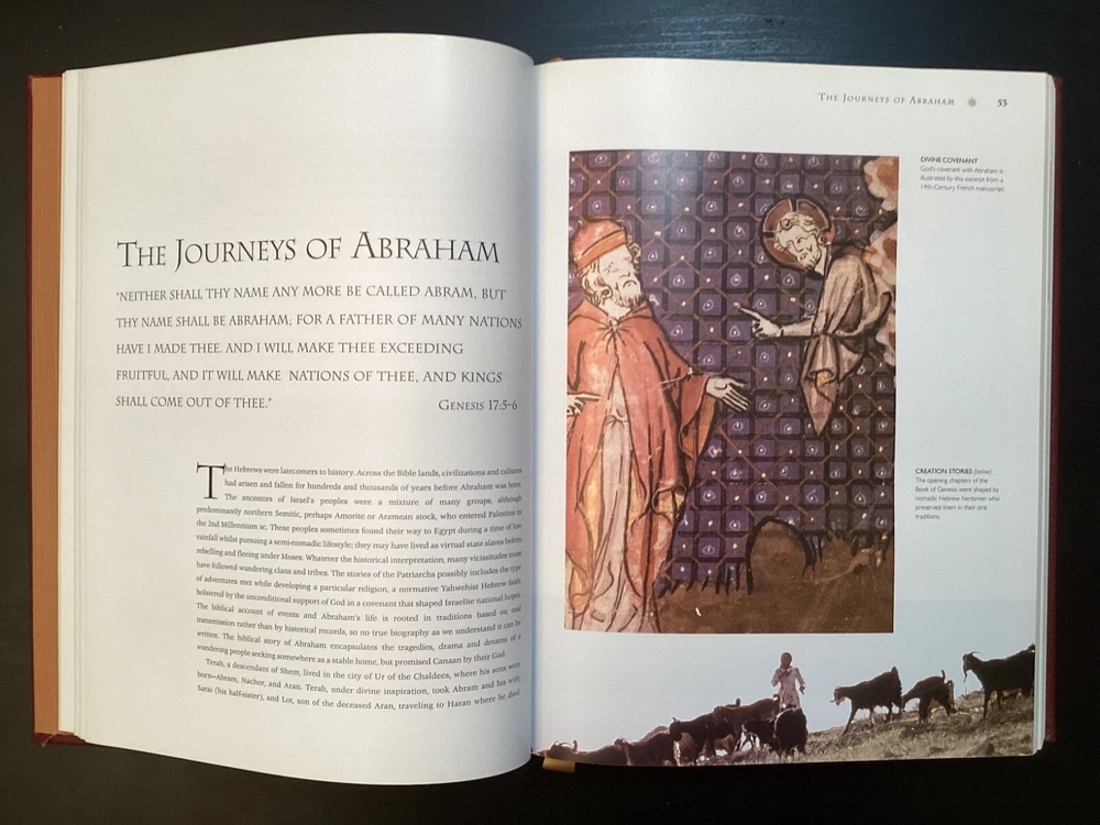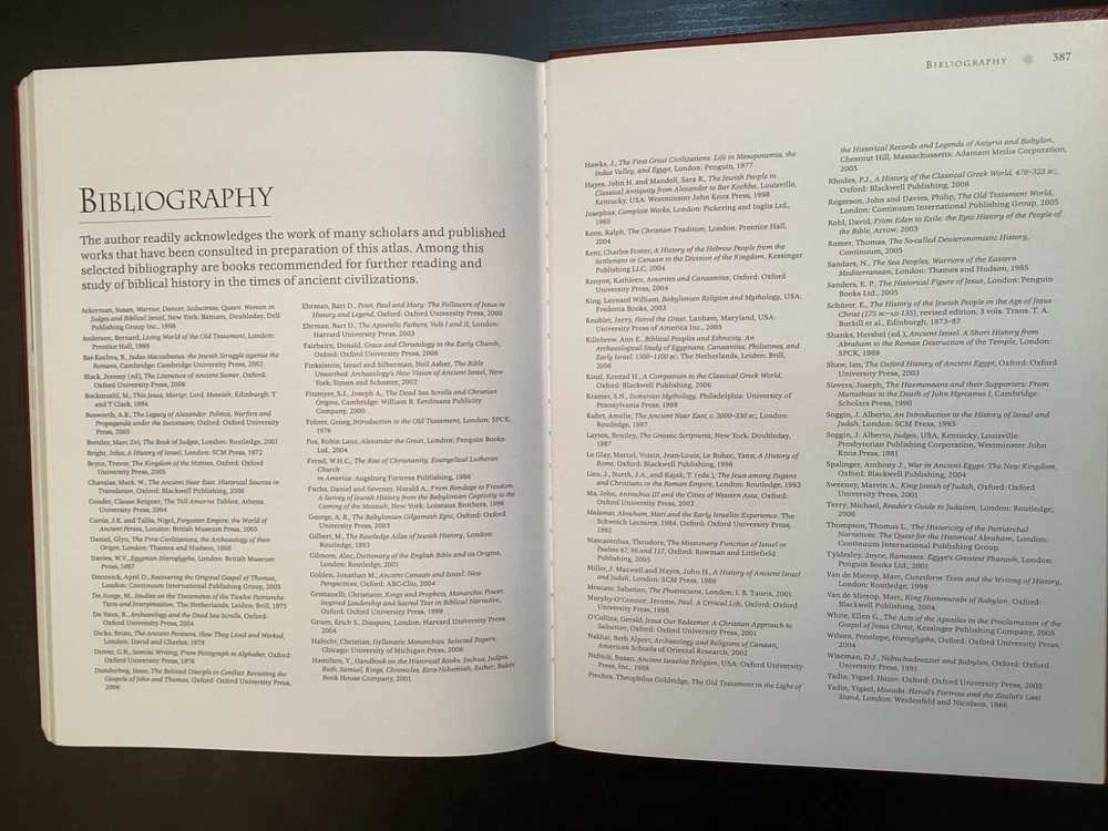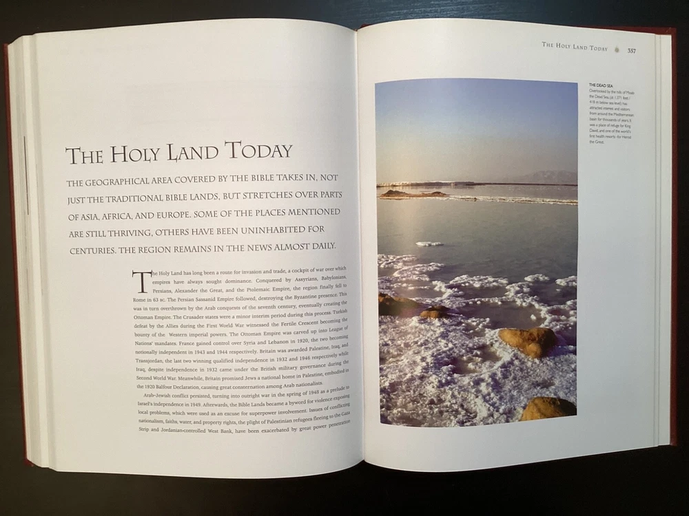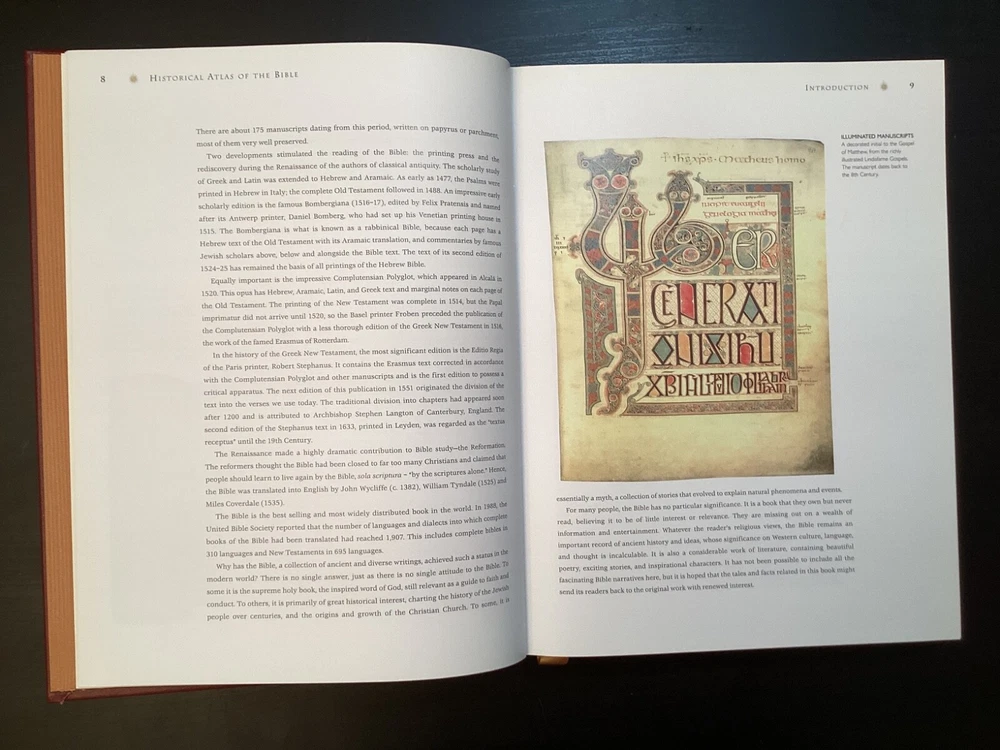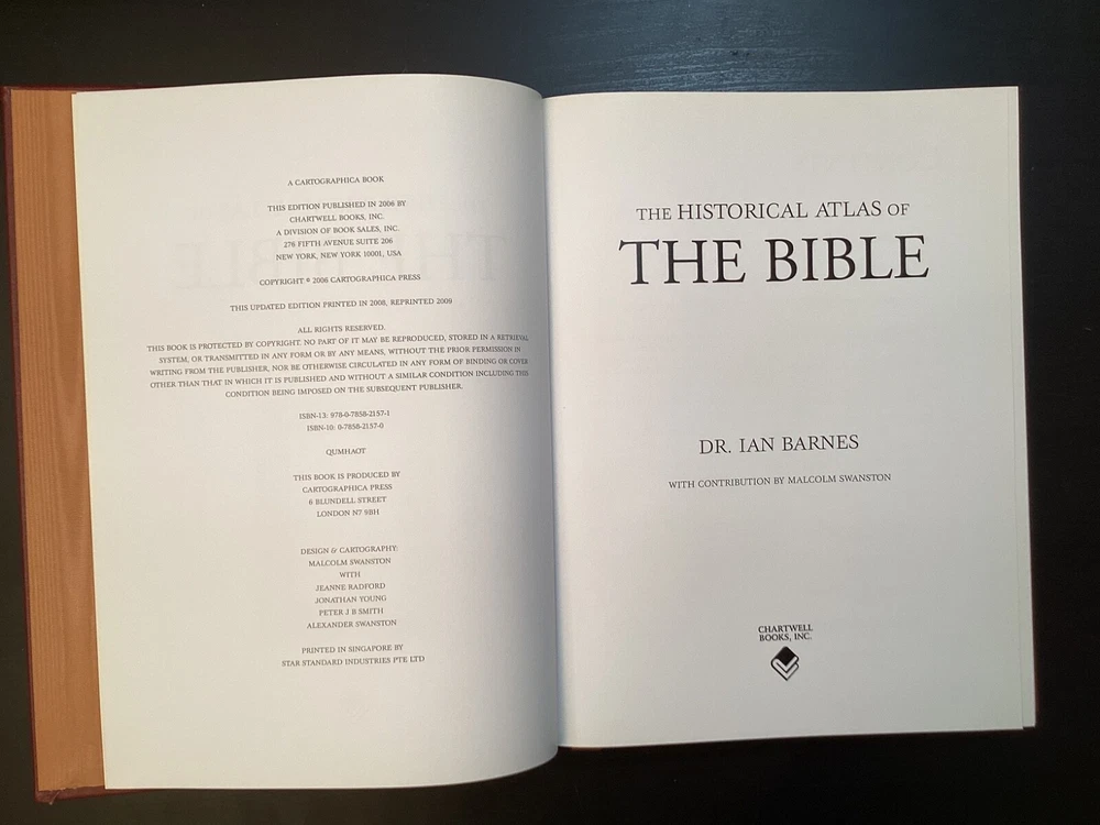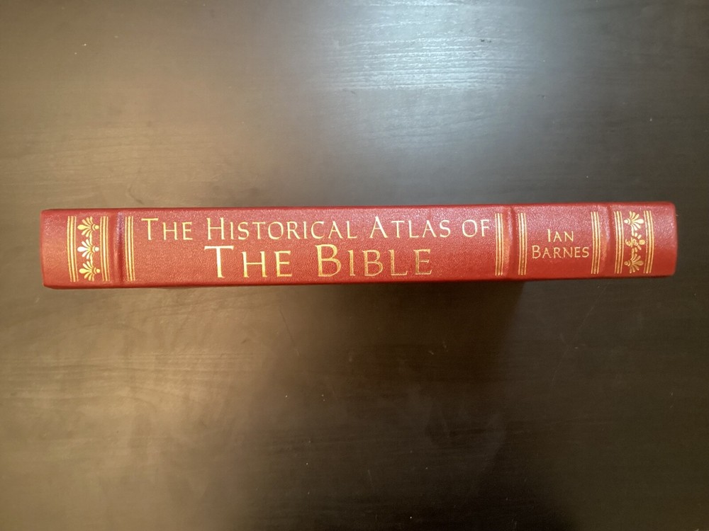 The Historical Atlas of the Bible Ian Barnes Chartwell Press, Copyright 2006, updated 2008, reprinted 2009 Easton Press, 400 pages Leather Bound, Illustrated Cover with light edgewear. Small rub at top right front cover corner with some loss of color...see photos. Cover edges slightly upturned. Solid, very tight, binding with all pages firmly attached. Interior like new. Pages clean, flexible and unmarked. Please carefully view photos to judge content and condition. Will send additional photos upon request. Media mailing only to the U.S.
