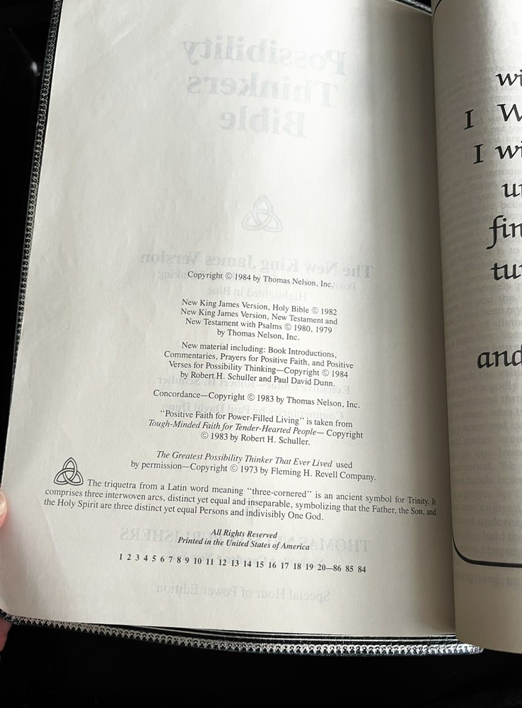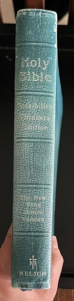 The Holy Bible 1984 Possibility Thinkers KJV Top Grain Cowhide Thomas Nelson Pub is a leather-bound novel that is perfect for those interested in spirituality, religious and spiritual genres. The book is written in English and is intended for young adults, ages 9-12, and adults. It has a historical narrative type and is a nonfiction novel. The book measures 9.5 inches in length, 6.5 inches in width, and 1.25 inches in height. It is a top grain cowhide format and has features that make it a great reference for those interested in Christianity. The book is a great addition to anyone's collection and is a valuable resource for those seeking spiritual enlightenment.