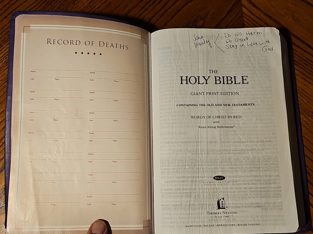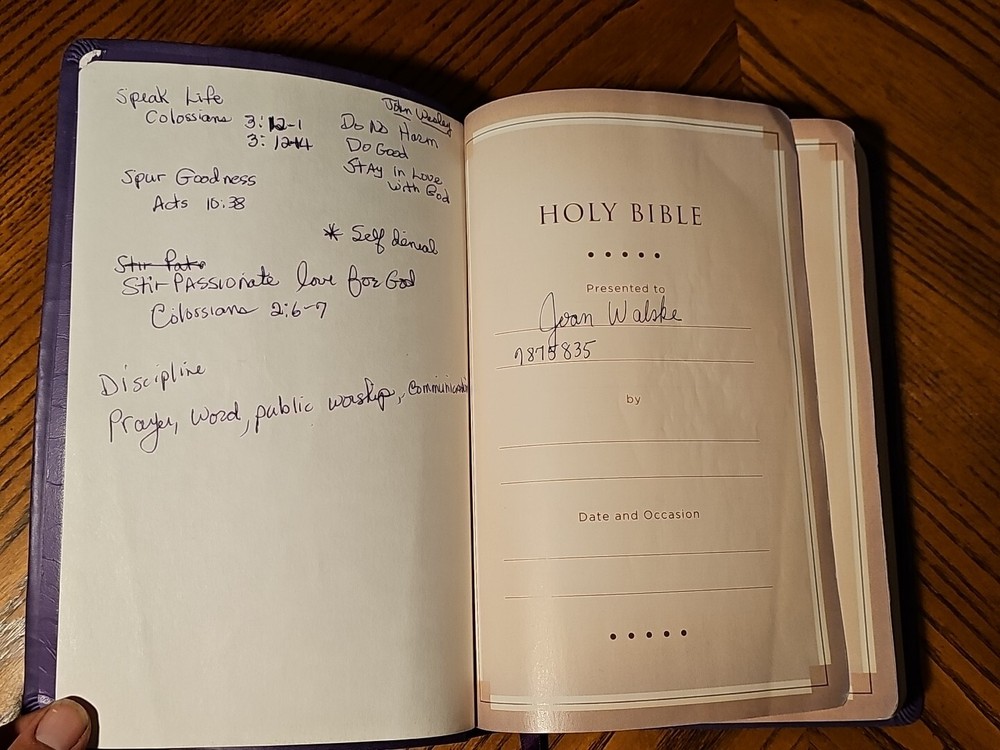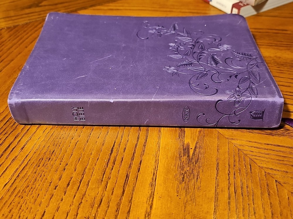 Has some notes in front and back. This giant print edition of The Holy Bible is a Thomas Nelson NKJV 2006 publication with a beautiful purple floral cover. The book is written in English and is perfect for those interested in spirituality and religious topics. The author is unknown, and the genre is spirituality and religious & spiritual. The book is available in a bonded leather format and is ideal for collectors or those who want a durable Bible. The title is The Bible, and the topic is the Bible. This edition is perfect for anyone looking for a large, easy-to-read version of the holy book.