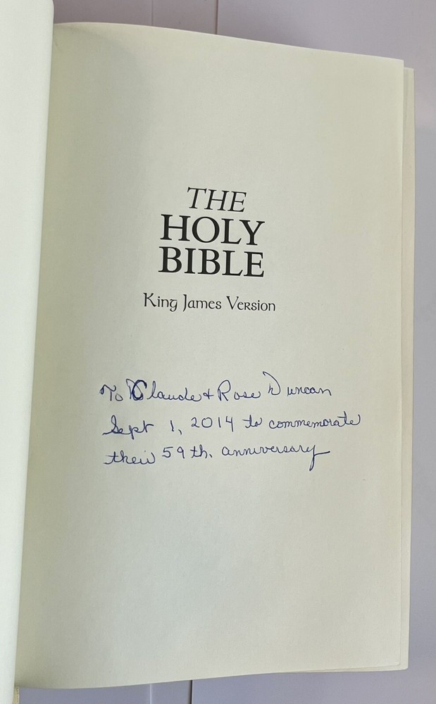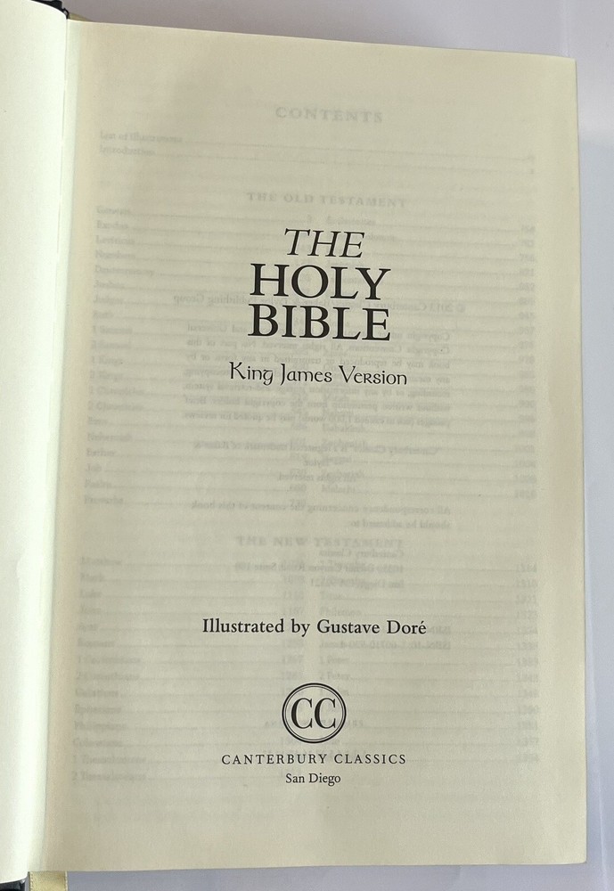 The Holy Bible, King James Version. Canterbury Classics leather-bound Bible published in 2013. It contains 1392 pages and is written in English. Beautiful gilt edges and page saving gold ribbon…Has a gift inscription …see pics
