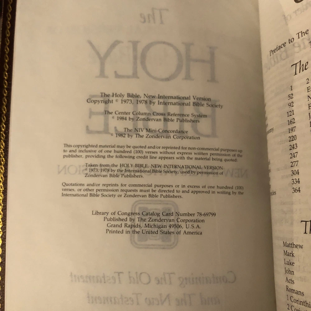 This leather-bound Holy Bible is a timeless piece that will help you understand and appreciate the teachings of Christianity. Printed by Zondervan in 1984, this edition features the New International Version and includes red lettering to distinguish the words of Jesus. Whether you're a student of spirituality, religious history, or simply looking for a reference guide to the Bible, this Personal Reference Bible is the perfect addition to your collection. With a focus on the teachings and message of Christ, this book will help you deepen your understanding of Christianity and lead a more meaningful life.