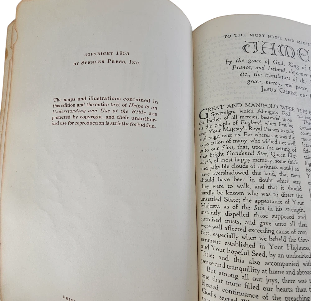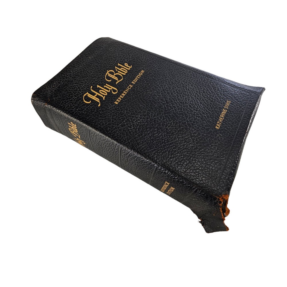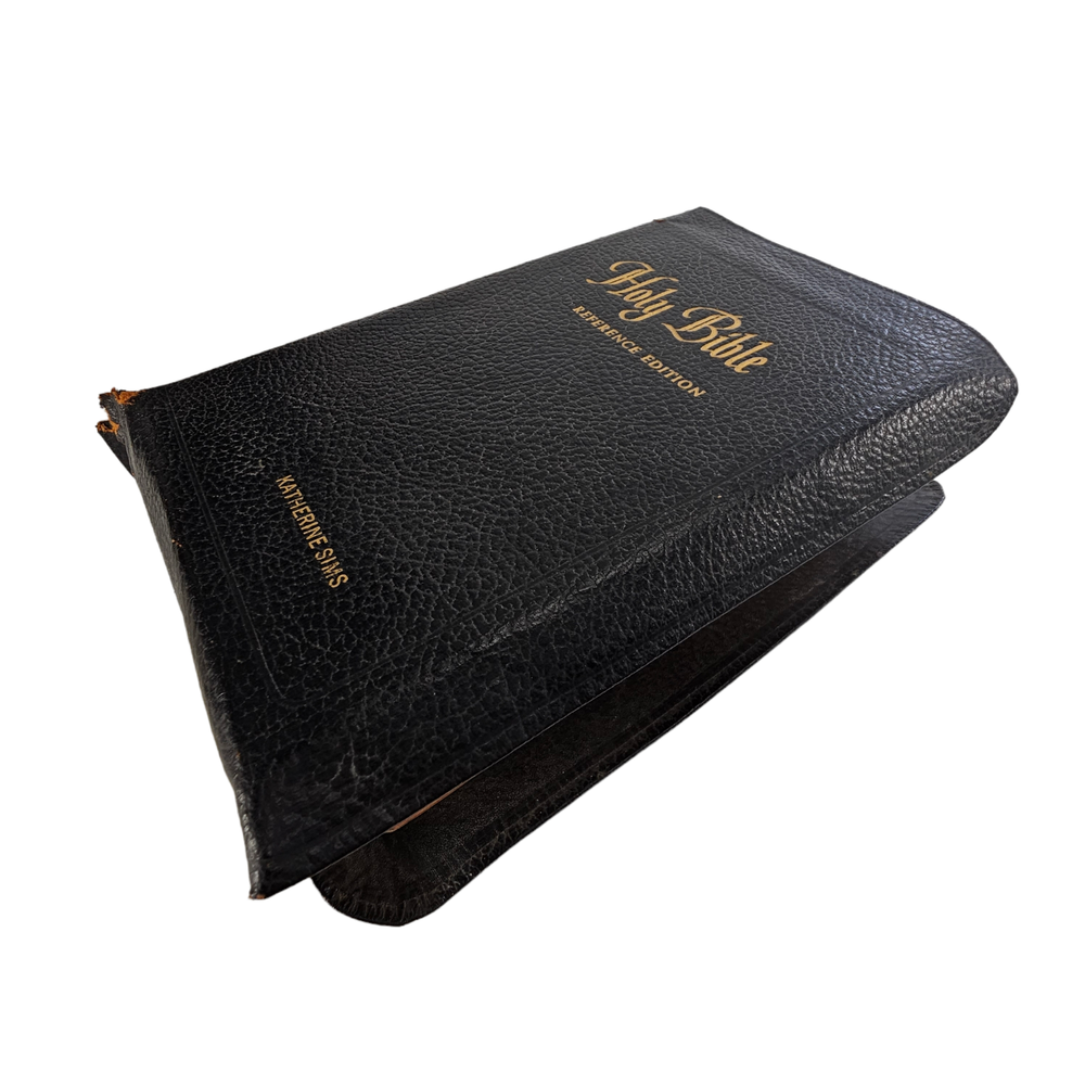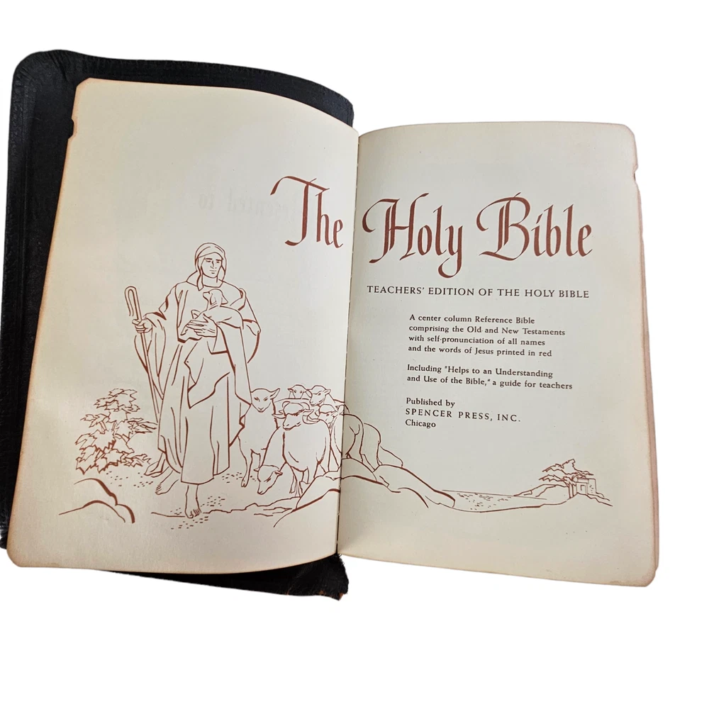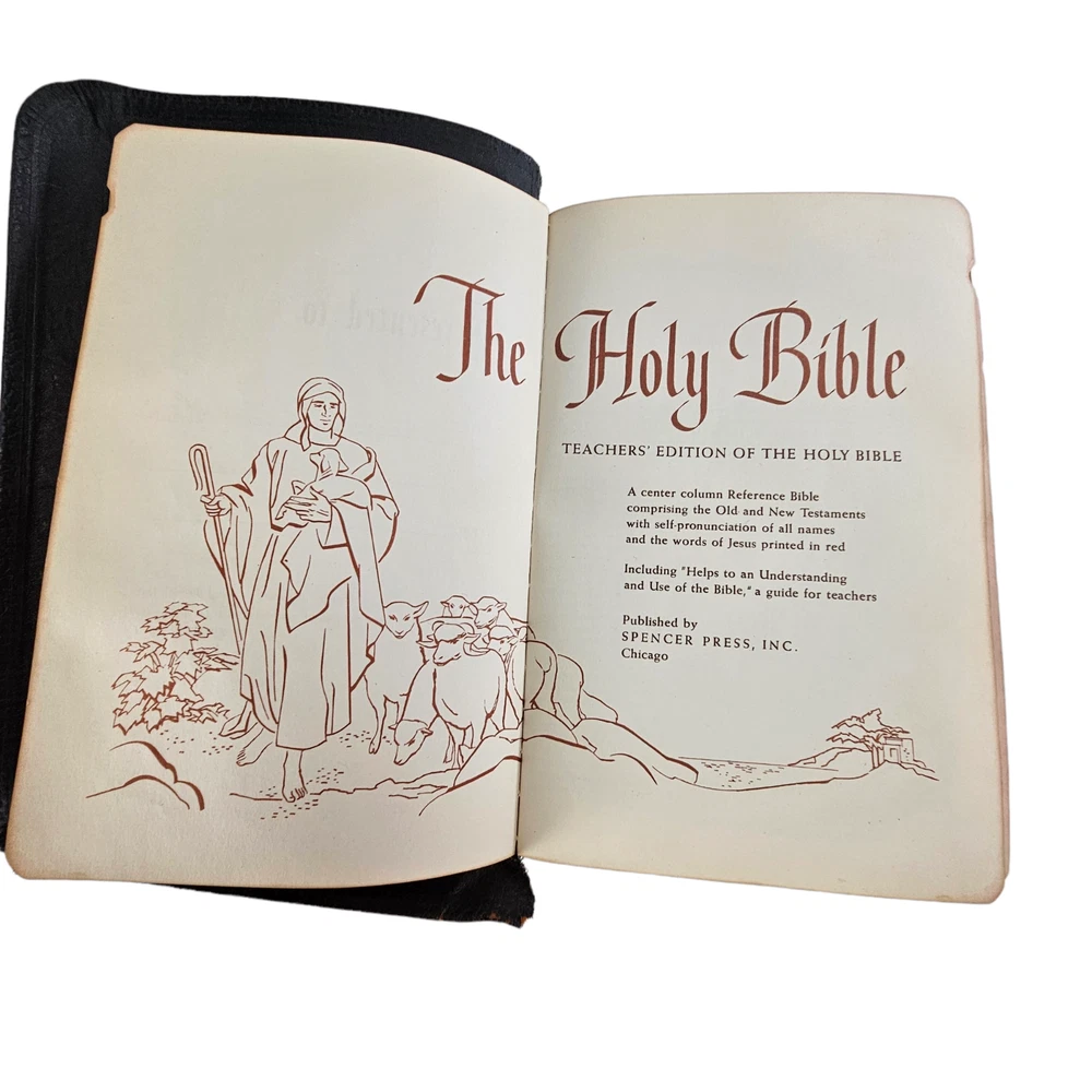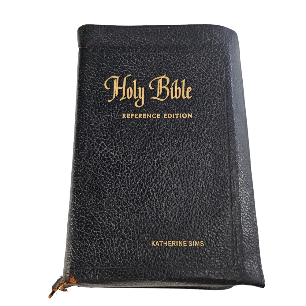 The Holy Bible Reference Edition Spencer Press, Inc. Genuine Leather Black 1955 Description : This bible has a leather cover. It was previously owned by Katherine Sims. This Bible is intended for use as a teacher's edition, making it a valuable resource for those seeking to deepen their understanding of the Scriptures. Whether you're a collector or someone passionate about religious texts, this piece will be a perfect addition to your personal collection. It also makes a thoughtful and meaningful gift for anyone interested in the teachings of the Bible. Teaching Bible, Reference Bible, Illustrated Bible, Leather Bible, Vintage Bible Measurements: 9" x 6" x 3" Condition: Some bending and wear on leather cover , spine and pages in good condition Weight: 3 lb Origin : USA Age : 1955 E-E-C-R 10 Why Buy From U s?... Fast Shipping. Free 30 day R eturns. ( On most treasures) We combine shipping and will send a par tial refund. And…. Professional Seller We are so dedicated to customer service; you may literally thank “God”, that you chose to buy from us. “I am so blessed and grateful the LORD bestowed this upon us. Thank you also to the seller who did a wonderful job!!!!” Passion for Packaging We get major kudos for our excellent packaging. Precisely because: you’re “breakable” treasure will float on a cloud of custom foam bedding during its journey to your home. So, even if your delivery person throws the box on your porch from his moving vehicle without slowing down, you have almost zero worries, as your treasure will remain safe and sound. “10/10 excellent packaging, treasure arrived fast and safe.” And….. “I was impressed with the careful attention given to the safe and secure packaging to protect the vases!” And… “Well wrapped. Arrived in excellent condition due to being well wrapped.” Awesome Merchandise/Accurately Described The treasures in our store are all personally curated to inflict awe, strike a chord, and melt your heart. After all; it is all about the love. “These are absolutely beautiful. My wife loves them!” And… “Absolutely Stunning! love the work that went into it , Just Beautiful. Fast shipping , Great packing as well. A++++” Very Inclusive Company We welcome cu stomers from all signs in the zodiac. ”I'm a Capricorn, so it was perfect!” One slight term and condition : In the very, and extremely rare occasion, that your treasure arrives damaged; you agree to not open a return right away and to cooperate with the carrier to provide photos and documentation, so an insurance claim can be made. PS last thing, but quite literally most important thing… If for any reason you are not feeling 100% joyful. Don’t hold back; please reach out and let us get you back to 100% again.