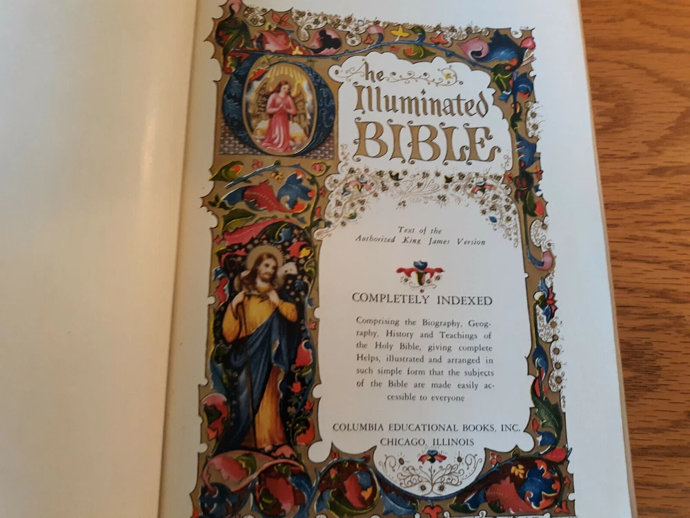 The Illuminated Bible 1941 Text Authorized KJV Indexed Columbia Educational Books There is some wear to the cover. The book has wear on the corners. There may be some marks in or on the book. Books are stored on a bookshelf in A/C. They are in a dark room and are well maintained. If you have any questions or concerns about this book please contact me. Listing and template services provided by inkFrog