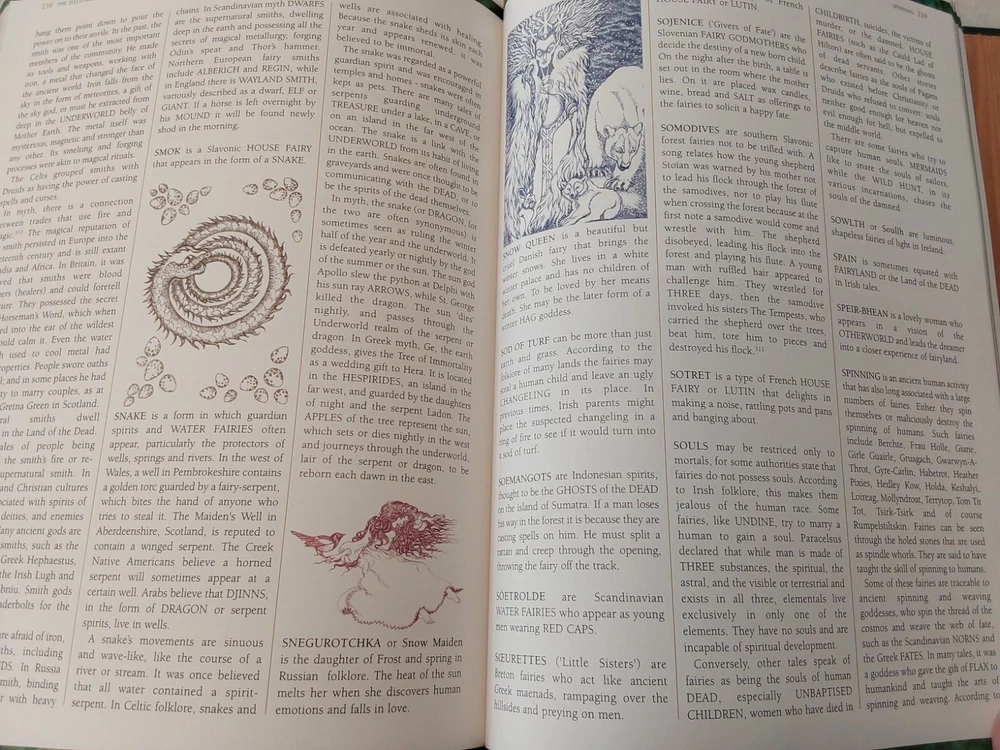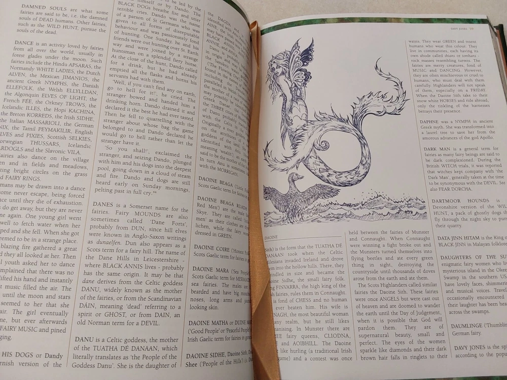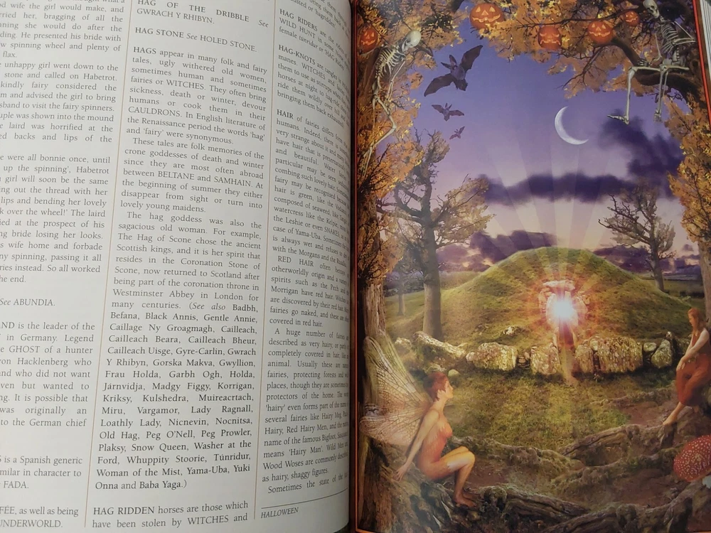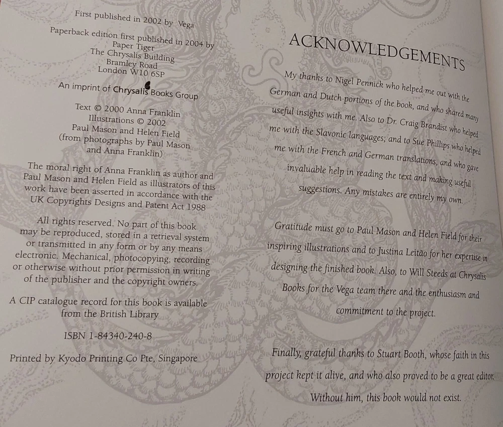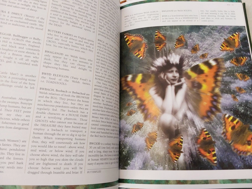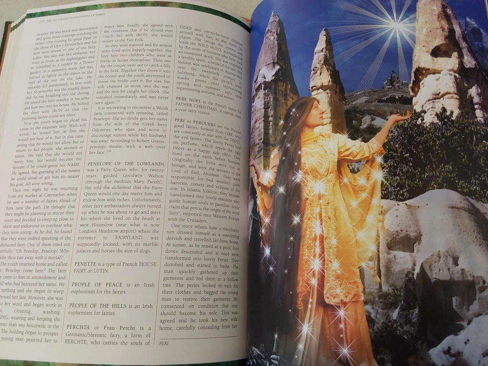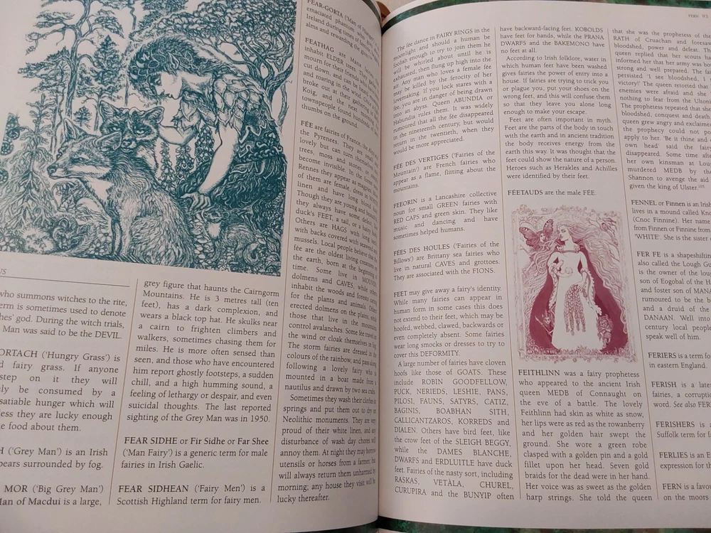 The Illustrated Encyclopedia of Fairies by Anna Franklin. Illustrated by Paul Mason and Helen Field. Norwalk, CT: The Easton Press/London: Paper Tiger, 2002. Green leather covers, with a pictorial center decoration on cover, along with gilt lettering and design on cover and spine, 3 raised bands on spine, gilt-edged text blocks, attached ribbon page marker, moire fabric end papers. With References, a Select Bibliography, List of Periodicals, Internet Sites, and Illustrations information at the back of the book, 288 pages. ISBN: 1-84340-240-8. Measures about 7 ¾” x 11.” Weighs alomost 3 1/2 pounds. The book looks like it was never read. No creases, tears, marks, or writing to pages. Pages are secure to the spine and binding is tight. Note that I have described the book as best as I can. Look closely at all photos for condition and details as they are also part of the description. Email with any questions.