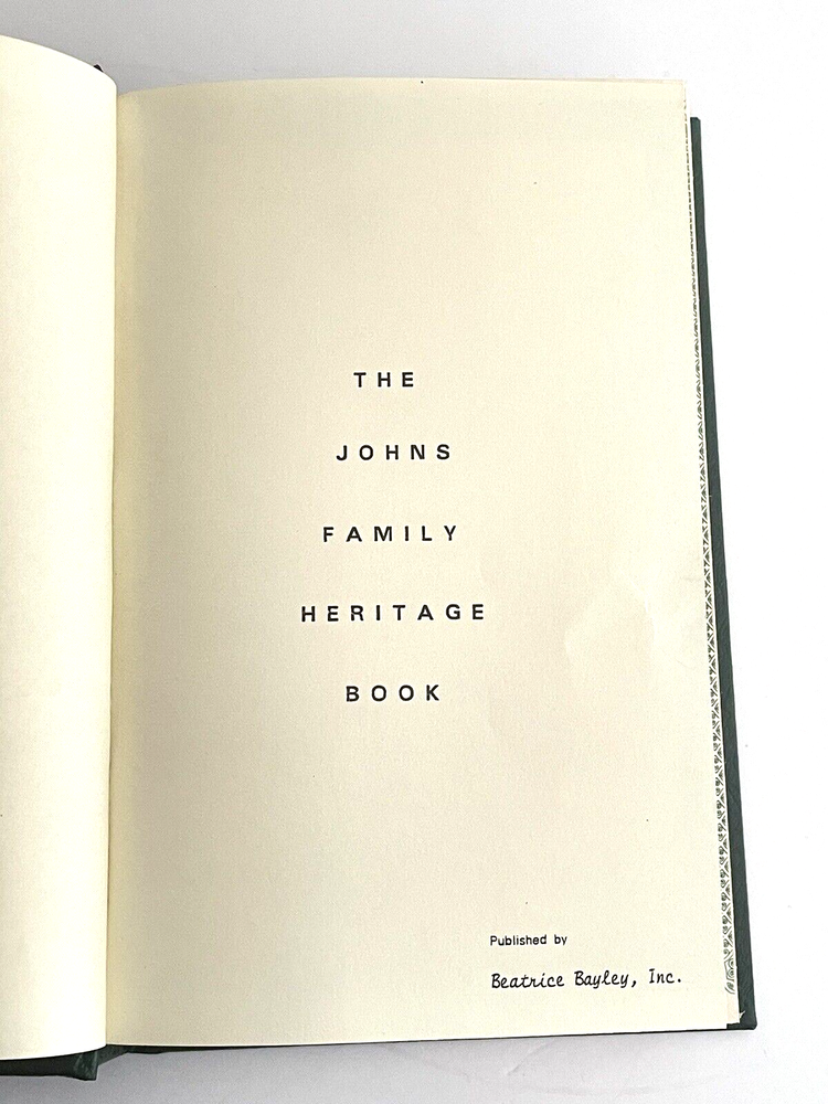 The JOHNS Family Heritage Book by Beatrice Bailey 1982 Leather-bound Geneology Family Tree