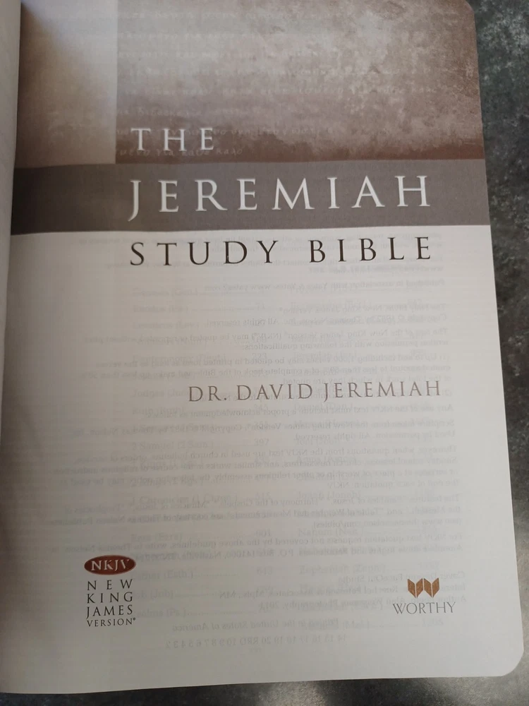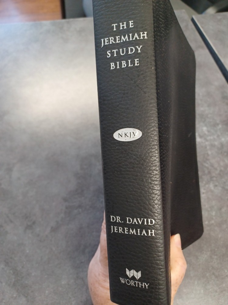 This Bible is in excellent pre-owned condition—clean, no marks, and smells fresh. The black leather cover feels premium, and the NKJV text is clear and easy to read. David Jeremiah’s insights add depth to study sessions. Highly recommend for anyone looking for a quality Bible at a great value!