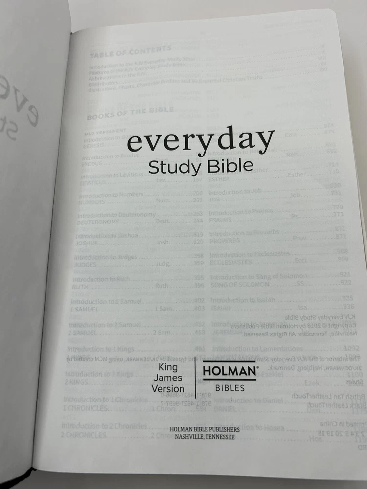 This KJV Study Bible is the perfect companion for anyone looking to delve deeper into the teachings of the King James Version. With its black leather touch cover, faux leather binding, and box, this Bible is both durable and visually appealing. It contains 1888 pages with a variety of features, including study notes, book introductions, articles, maps, charts and diagrams that add value to your reading experience. The book series is designed for young adults and adults, making it a great resource for those looking to deepen their faith. This edition was published in 2018 by B&H and is in English. It comes with a variety of aspects such as the original language, intended audience, narrative type, and publisher, making it a valuable addition to anyone's collection. The Bible doesn’t appear to have ever been used. The spine is still very tight. The box has some minor blemishes. Probable from shelf wear. The Bible is in excellent shape.