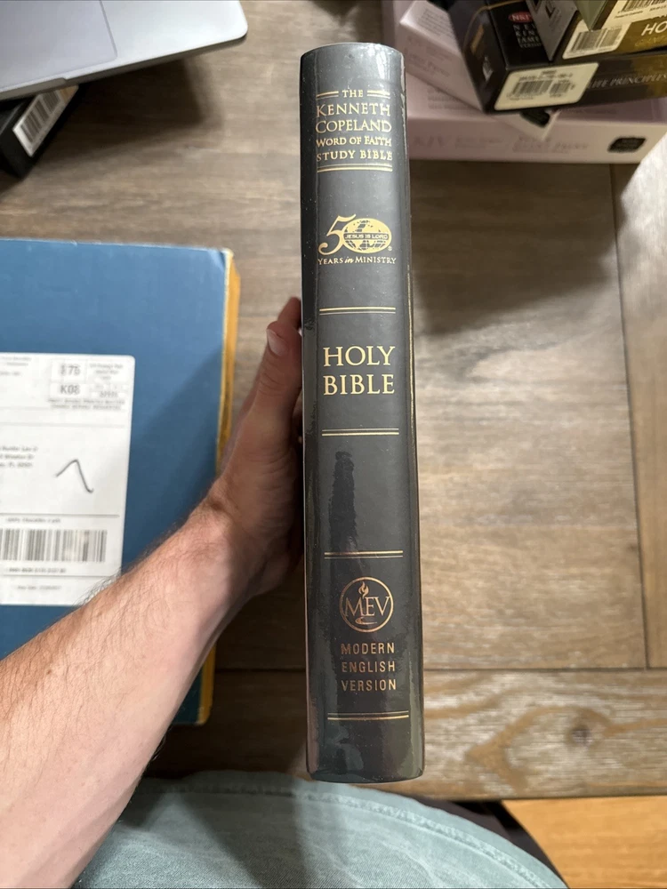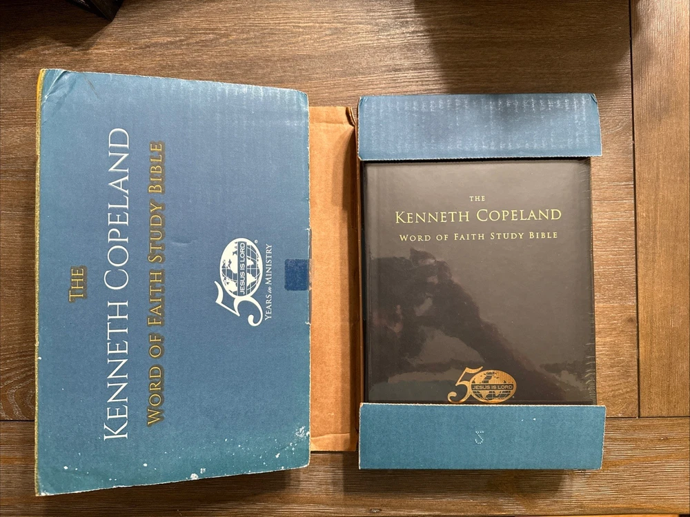 This deluxe collector's edition of The Kenneth Copeland Word of Faith Study Bible celebrates its 50th anniversary. With its modern English version and extensive collection of xx pages, this hardcover bible is perfect for anyone looking to deepen their understanding of the scriptures. The beautiful faux leather binding adds to its elegance, making it a great addition to any book collection. Written by Kenneth Copeland, this bible is a must-have for anyone interested in the English Standard Version or reference. Published by Charisma Media in 2014, it is weighted at 15.7 oz and measures 6.5 inches in length, 4.5 inches in width, and 2 inches in height. With its topic on the English Standard Version and general reference, this bible is a valuable resource for anyone seeking spiritual enlightenment. Brand new never opened in original packaging from Kenneth Copeland publications