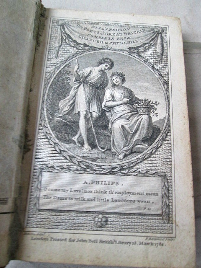 cha10. Vol. 4 of Bell's Ed9t90j of Poets of Great Britain. Pub. John Bell, London, 1782. 24mo, 5 1/8", 137 pages. Engraved frontispiece and title page. Full calf covers Very Good+ condition. Do not hesitate to e-mail with any questions. As Always, Satisfaction Guaranteed! PAYMENT: PayPal, but I am open to other ideas! I expect to receive payment within 10 days, unless we have made other arrangements. Books will be sent via USPS Media mail. If you prefer Priority mail, I will be glad to make the adjustment. I'm glad to combine multiple purchases in order to minimize shipping costs. I WILL SHIP INTERNATIONALLY, and I try to be as economical as possible with the shipping costs. RETURN POLICY: Satisfaction Guaranteed! Track Page Views With Auctiva's FREE Counter