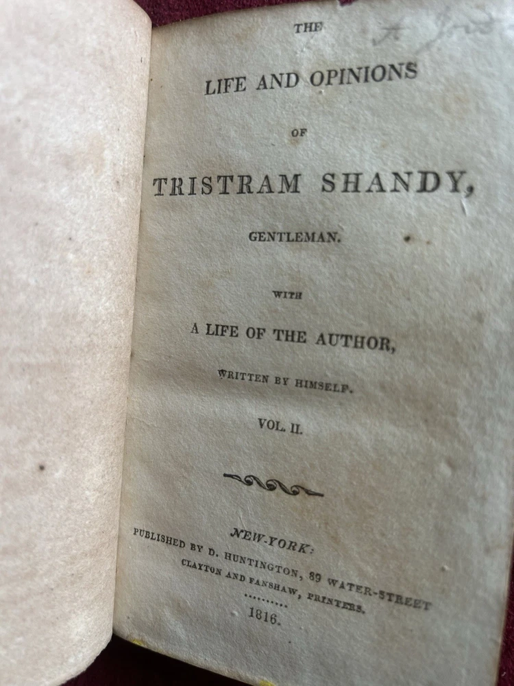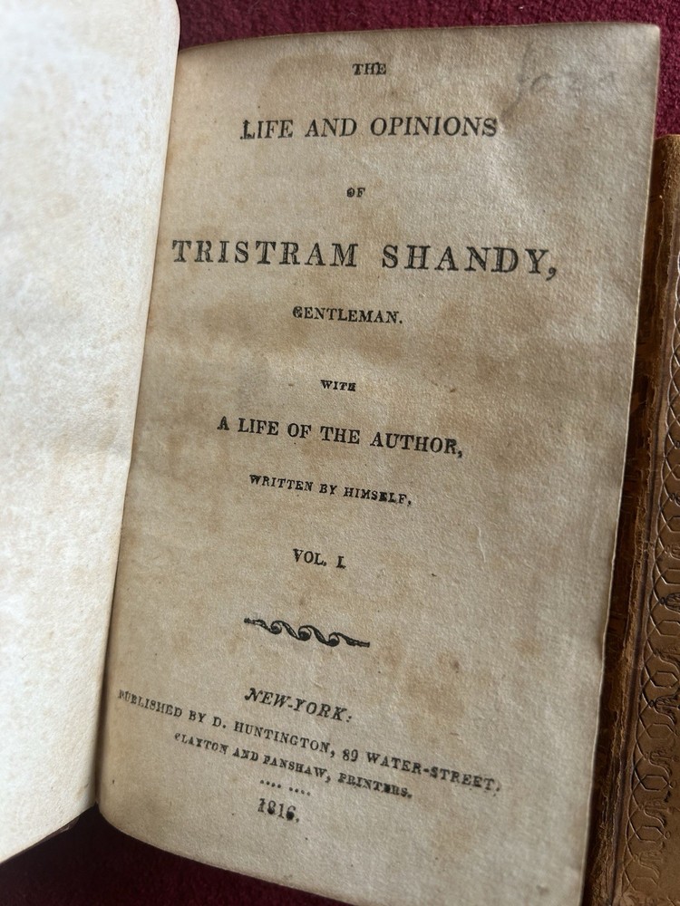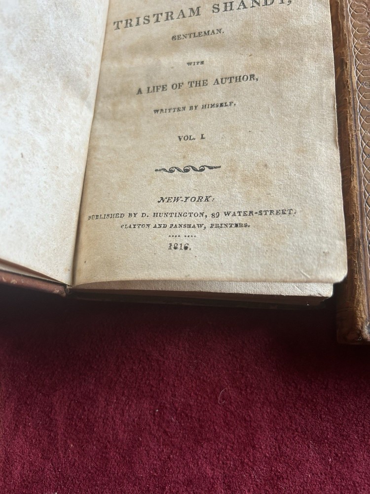 This is a rare and collectible first edition of "The Life And Opinions Of Tristram Shandy" written by the author himself. The book is bound in leather and was published in New York by D. Huntington in 1816. It is an original copy and the language used is English. The book belongs to the genre of biography and autobiography and is a valuable addition to any collection. The special attribute of this book is that it is a first edition and an original copy. Two volume leather set has cover wear, nicks, scuffing , spine wear , beginning of seperation but holding well