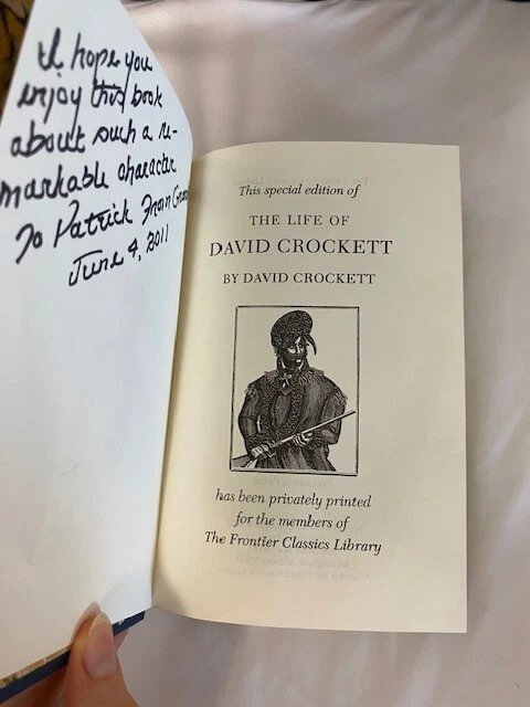 First published in 1834, "A Narrative of the Life of David Crockett" is the autobiography of the famous American folk hero Davy Crockett, often referred to as the "King of the Wild Frontier". Born in 1786 in Tennessee to an impoverished family who often struggled to make ends meet, Crockett was an adventurous and resourceful boy who was forced at 12 years old to work to support himself. Crockett recounts these early formative years of hardship, as well as his two marriages, famed bear hunts, battles with Indians during his service with the Tennessee militia, and his eventual political career. Crockett became famous during his lifetime for his hunting and fighting exploits and it was this fame that helped him win a seat in the Tennessee state legislature in 1821 and the U. S. Congress in 1827. He often clashed with President Andrew Jackson and openly opposed the Indian Removal Act. Crockett's political fortunes often rose and fell, as he was defeated in the election of 1831, but re-elected in 1833, before publishing his autobiography. "A Narrative of the Life of David Crockett" preserves for all time the fascinating and larger than life exploits of this American legend. 415 pages, hard cover. "Great Condition" except some writing in front cover page (refer to photo). Well-kept in smoke free, pet free home.