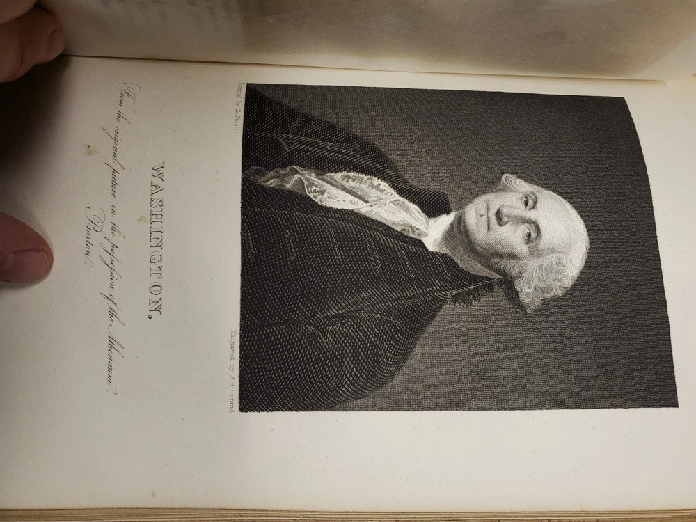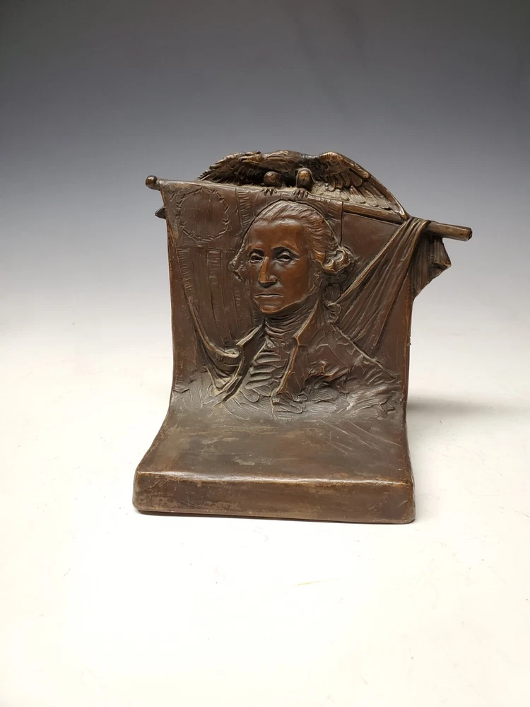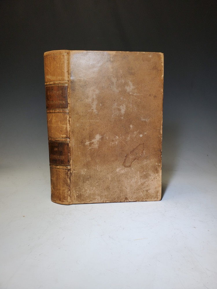 1. SPARKS, Jared. The Life of George Washington. Boston: Jared Sparks, 1839. Full leather binding. Illustrated with engravings of portraits and maps and buildings used in Washington's life. Some overall wear and soiling to full leather bindings. Some damage to paper pages here and there, but overall a very nice copy, and it comes with a Washington bookend. 2. Metal George Washington Bookend. Just one bookend. With some damage to rear. Wear and soiling appropriate to age.