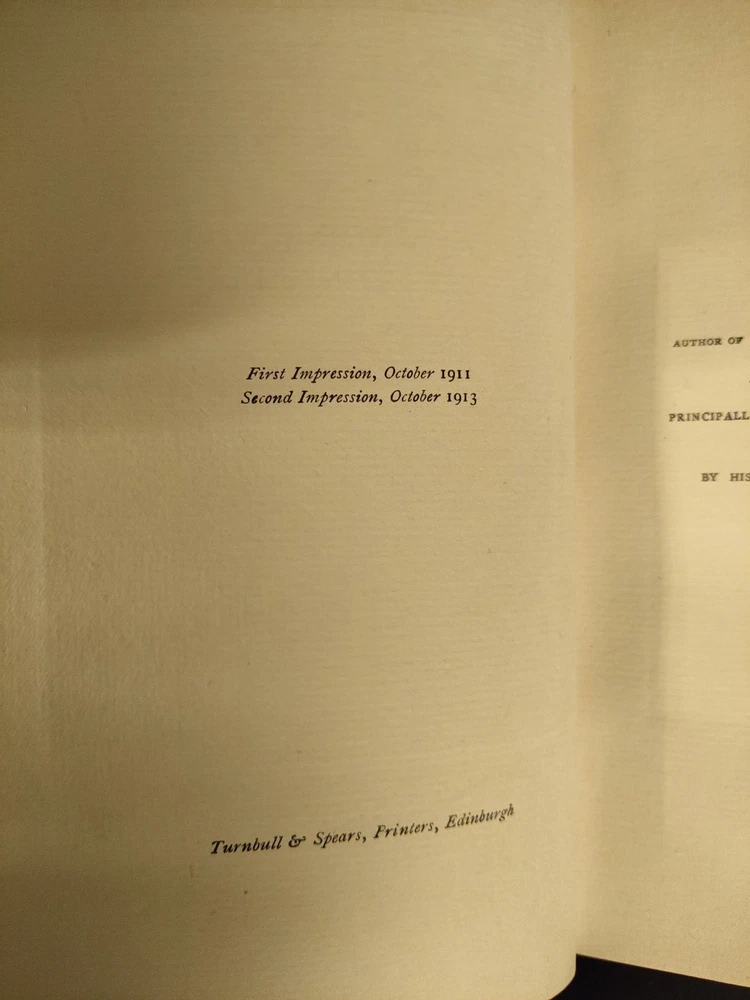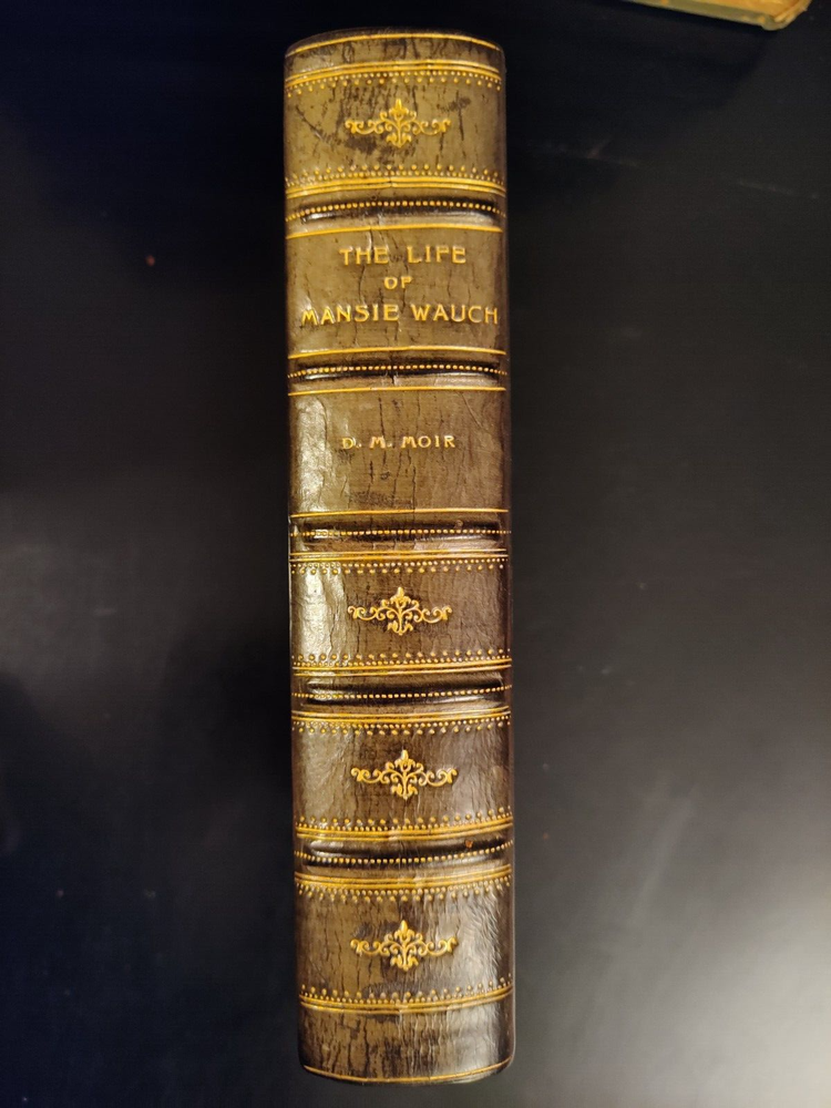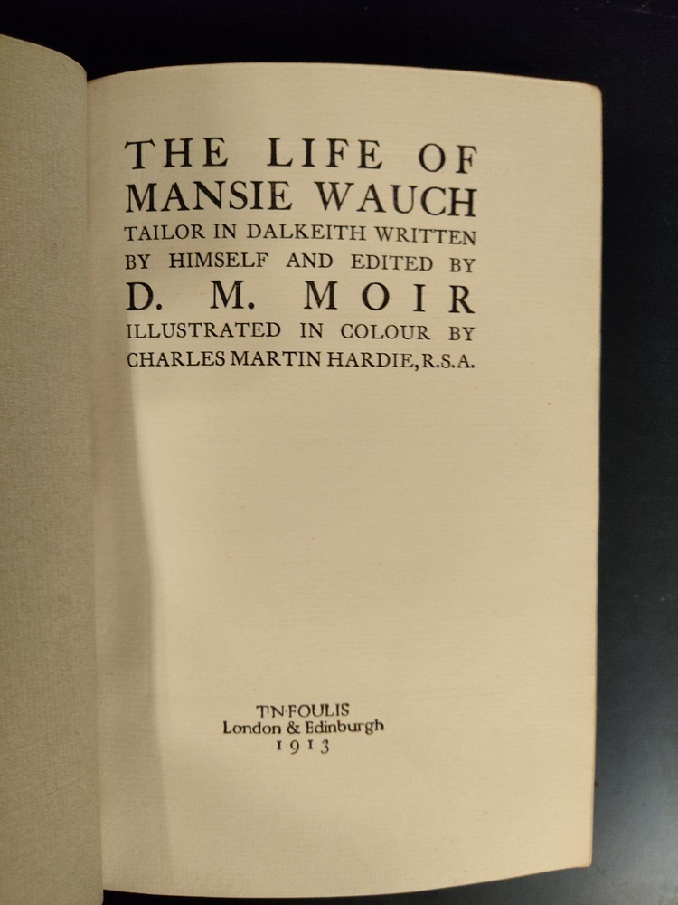 This auction is for a Second Impression volume of "The Life of Mansie Wauch" edited by D.M. Moir. The copy published in 1913. Blue leather and boards, with gilt to the top edge. Crisp pages. Includes all 16 color illustrations. Faults listed above, otherwise clean pages and good binding. Purchased at auction. Feel free to ask any questions. Good luck and thanks for bidding! You can bid with confidence. I have been an eBay member in good standing since the 1990's, and continue to receive terrific feedback both as a buyer and a seller. I am not a professional dealer; just a regular guy who buys and sells stuff on eBay when I have something to sell or find something to buy. (U1) If you need more photos of an item please just ask.