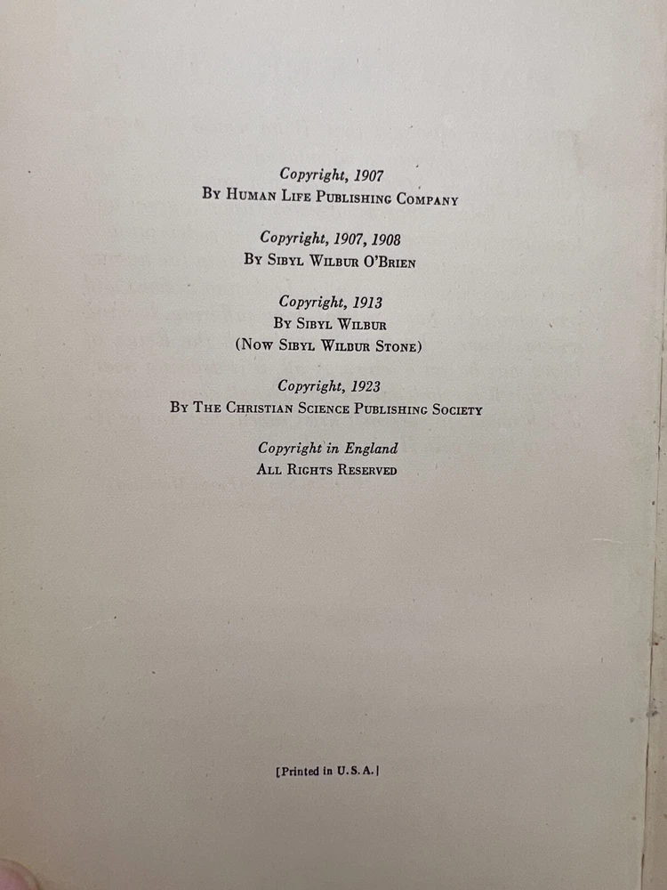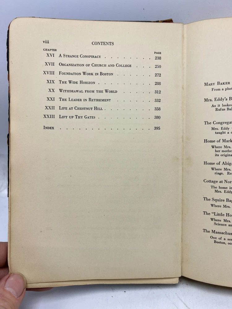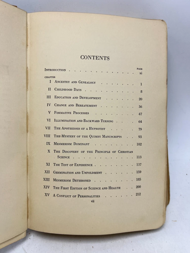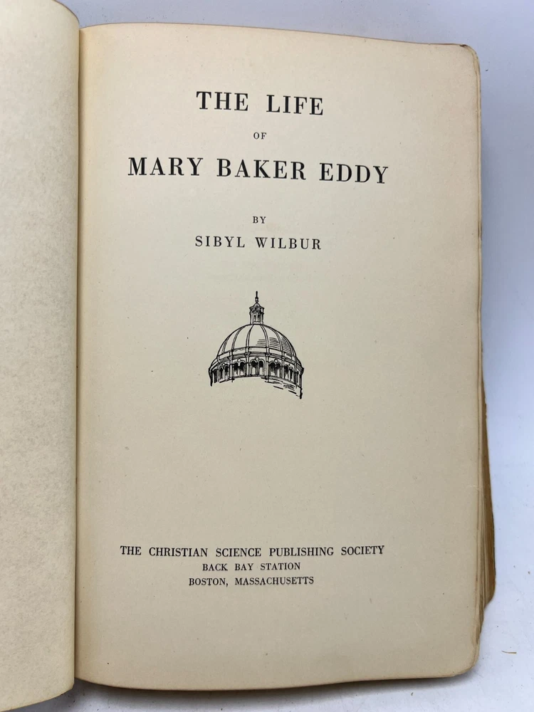 GS#100 - 24039 The Life of Mary Baker Eddy by Sibyl Wilbur Published By: The Christian Science Publishing Society. Copyright 1923 Condition: Acceptable - Covers in fair condition with heavy wear on edges. Cover legible. Spine legible with heavy wear on edges. Binding becoming week. Hinges broken. Tanning of pages from age. See Pictures. Info: Height: 8 3/4" Width: 5 3/4" Thickness: 1 1/2" Pages: 406 About: See scanned pictures. Check out my other items ! Be sure to add me to your favorites list !