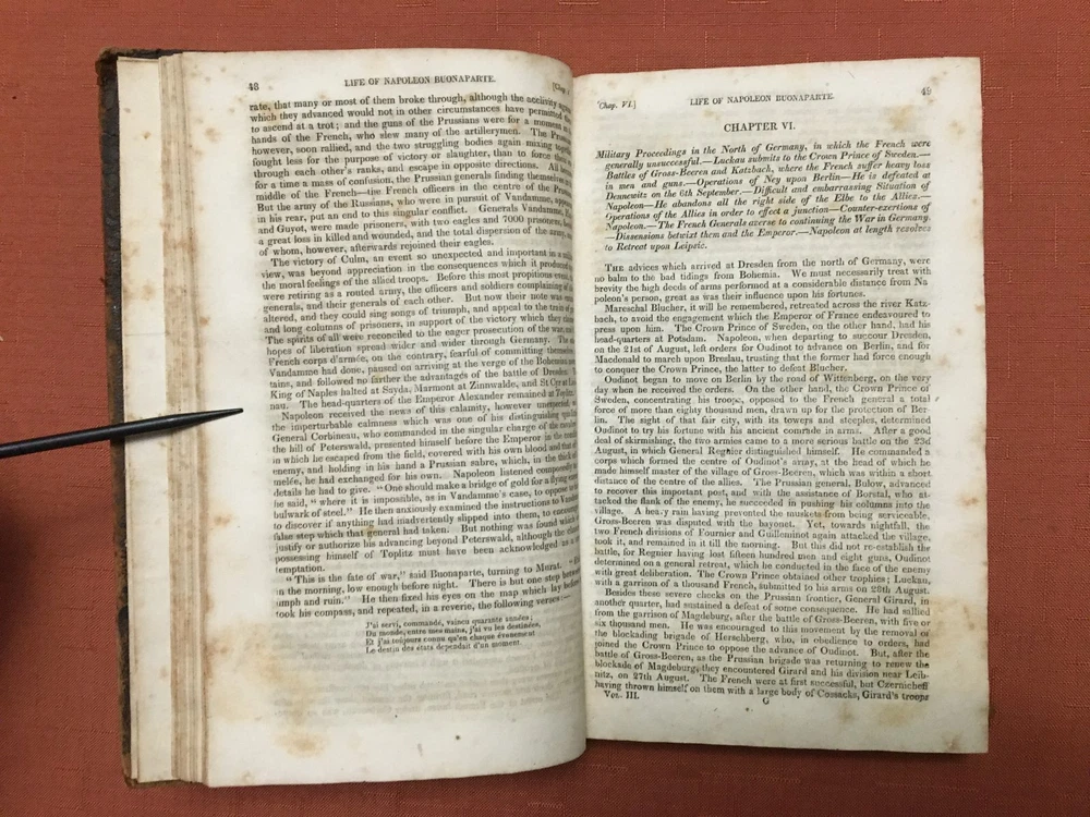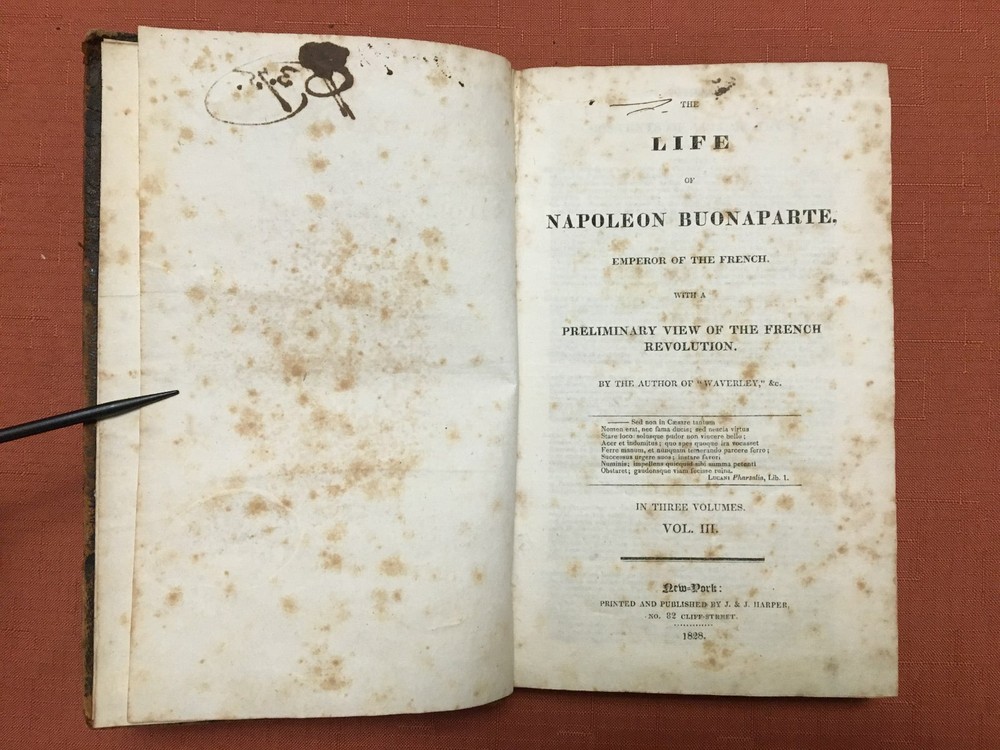 The Life of Napoleon Buonaparte - Volume 3 - 1828 - by Sir Walter Scott -Leather The Life of Napoleon Buonaparte - Volume 3 - 1828 - by Sir Walter Scott -Leather Click images to enlarge Description THE LIFE OF NAPOLEON BUONAPARTE VOLUME III ? BY SIR WALTER SCOTT - 1828 PRINTED AND PUBLISHED BY J & J HARPER - NEW YORK - CLOTHBOUND - 368 PAGES + APPENDICES - 5 1/2" X 8 3/4" - JGS INVENTORY LOCATION: 083-2021 Condition: Good Condition Notes: There is wear and soiling to cover and interiors. Binding has wear, but is overall sound. No loose pages. Please see photos. Payment Paypal Shipping Domestic shipping: Fixed Shipping Charges. International shipping: Weight based Shipping Charges. International Carriers are: Usps Priority Intl Shipping Carrier Domestic International Shipping Locations Usps Book Rate $0.00 - - I will ship to: United States, Worldwide Weight: 2 lbs. Shipping and Handling: Please check eBay's Shipping & Payment tab Thank you for visiting the Juniata General Store. We are located in the heart of Central Pennsylvania just up the road from the beautiful Juniata River. We offer a wide variety of merchandise, both new and vintage. Most of our inventory is one of a kind items and we add new items constantly so check back often. Vendio Images: More than just a pretty image. 250+ Mobile Responsive & Active Content Free Listing Templates with Vendio Sales Manager. Vendio provides powerful selling automation for sellers of all sizes. Get business information that counts! - Vendio Counters are active content free.