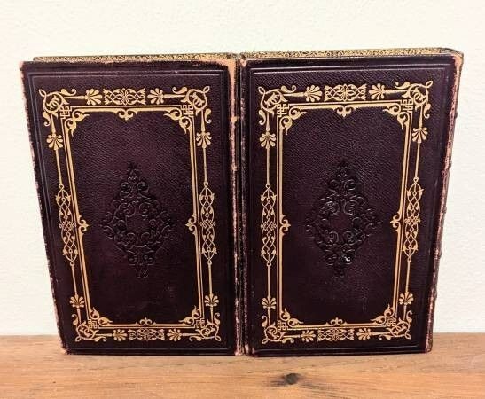 First edition full 2 Volume Set Gold guild page ends Each book measures 8.3/4" x 5.1/2" First Volume: 515pps - pencil marks on 1st blank page - owners signature (1851) on 2nd blank page Second Volume: - pencil marks on 1st blank page All pages are intact and no signs of separation. Both Books in Pretty good condition, especially since they are nearly 200 years old.