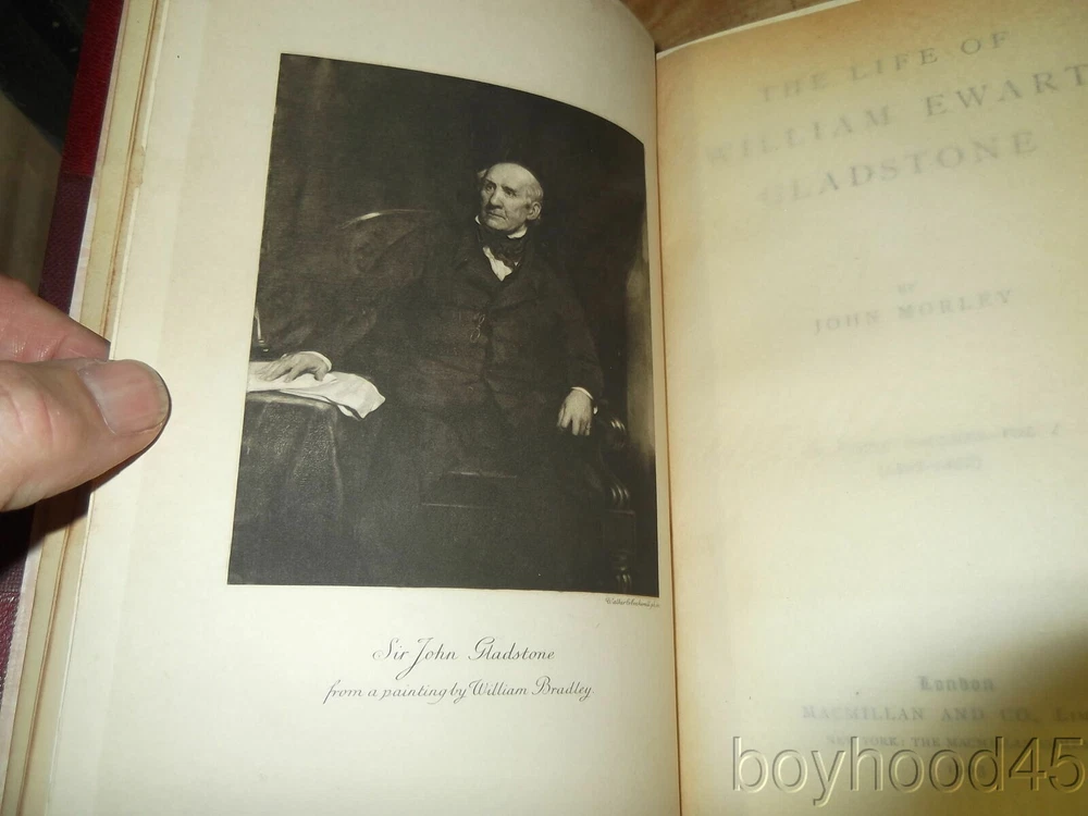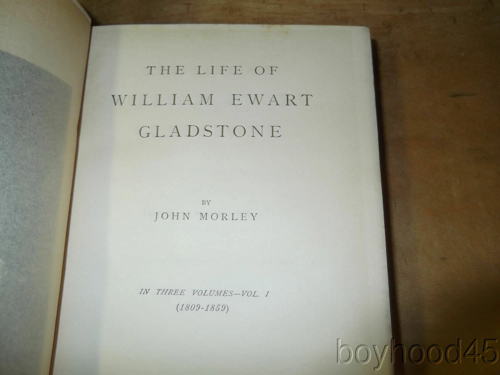 The Life of William Ewart Gladstone by John Morley-3 Vols.-Leather Description The Life of William Ewart Gladstone by John Morley-3 Vols.-Leather I am selling the 3-volume set of "The Life of William Ewart Gladstone" by John Morley. Published by Macmillan and Co. Ltd., London, 1903. It is the First Edition of this noteworthy biography. Bound in half-leather. Books are very clean, tight and show only light, expected wear. Wear primarily noted on corners. There is spotting to page edges as illustrated in my photos--no internal foxing/spotting. There is a personal library bookplate of the former owner, as well an a name and date written on flyleaves. Very Good condition. Books measure 6 X 8 7/8. A few copies of this important work appear on other internet booksites for upwards of $643 for books bound in leather. I will offer this lovely HALF LEATHER SET for only $250.00 plus $8.00 S&H in the US. PLEASE NOTE: SHIPPING FOR THIS 3-VOLUME SET WILL BE $8.00. Shipping costs to Canada will be considerably less than the general international rates quoted. Thanks for shopping mellowpagesrarebooks.com Payment I accept the following forms of payment: PayPal Shipping & Handling I will ship Priority for an additional fee upon request. PLEASE NOTE: SHIPPING COSTS FOR MULTI-VOLUME SETS OR OVERSIZED BOOKS WILL EXCEED THE STANDARD "US SHIPPING" ECONOMY RATE OF $5.00. COST OF SHIPPING OVERSIZED BOOKS OR MULTI-VOLUME SETS ARE SPECIFIED WITHIN THE TEXT OF THE LISTING. Canadian buyers are not subject to stated international shipping costs and will pay less than the amount stated. US Shipping $5.00 USPS Media Mail® International Shipping $85.00 USPS Priority Mail International FREE scheduling, supersized images and templates. Get Vendio Sales Manager. FREE scheduling, supersized images and templates. Get Vendio Sales Manager. Condition Notes: A nice vintage set!! Payment Payment Options: Paypal Shipping Shipping Options: Domestic shipping: Fixed Shipping Charges. International shipping: Fixed Shipping Charges. Shipping Carrier Domestic International Shipping Locations Usps Book Rate $5.00 - - Usps Priority Intl - $85.00 Worldwide I will ship to: United States, Worldwide Vendio provides powerful selling automation for sellers of all sizes. Get business information that counts! - Vendio Counters are active content free.