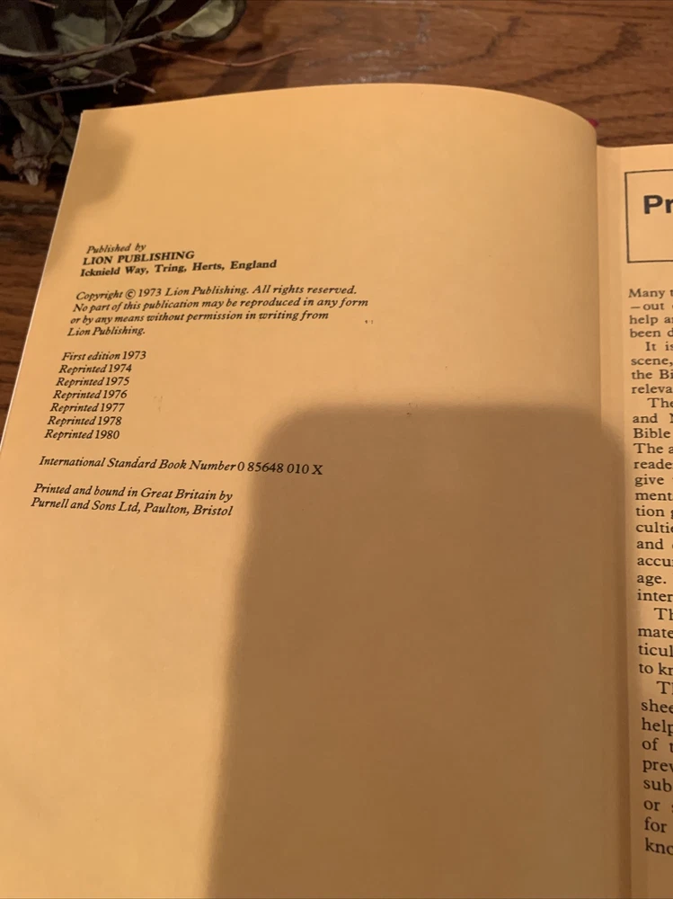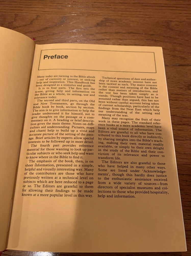 The Lion Handbook to the Bible 1973 Reprinted In 1980 Hardcover VG Condition. Dust jacket is missing. Hardback book in very good condition with light wear and tear. No marks anywhere inside book. Profusely Illustrated with color and black and white illustrations and photographs.