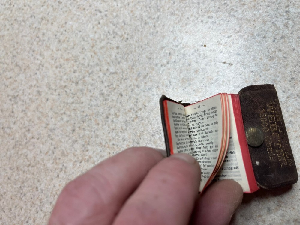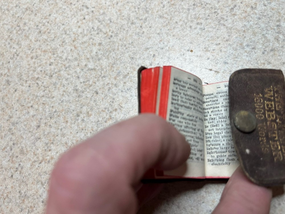The Little Webster 18000 Word Dictionary Miniature Leather Bound See photos, seems in good shape for the age. I don't use stock photo's, all the items in the pictures are the items you will receive. Conditions can vary please look at photo's carefully, and zoom in. Cards come in team bag. Please email and ask anything. I'm friendly. Please visit our store and email any questions. I always try to combine shipping when possible so please look through my other items. Email with any questions. L54