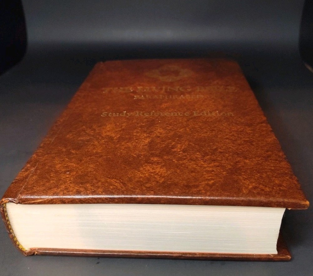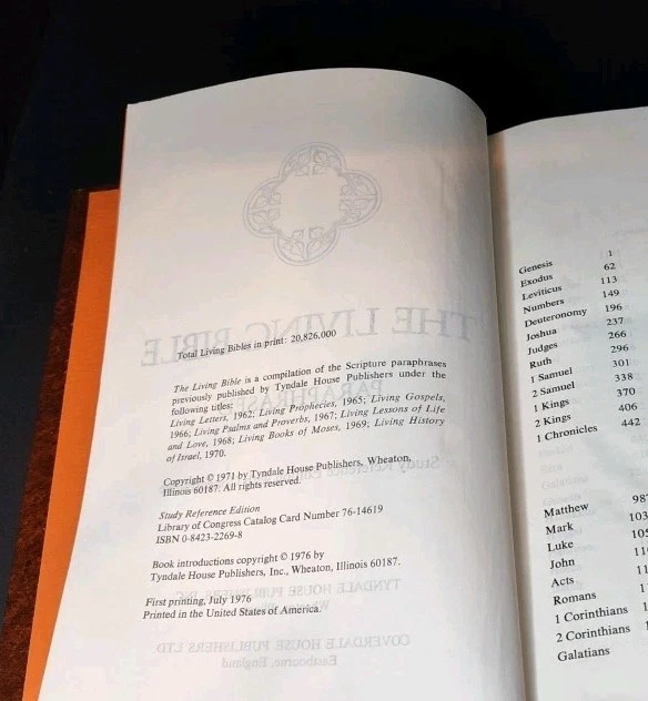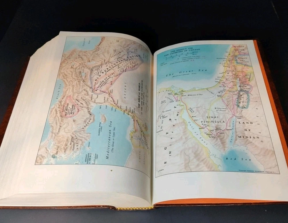 This is a perennial favorite, especially in the mid-1970s when this gem was published. This is the paraphrased edition with a detailed concordance in back as well as color maps of the Biblical lands. It is free from writing or markings, except for the inscription in the front cover from 1978.