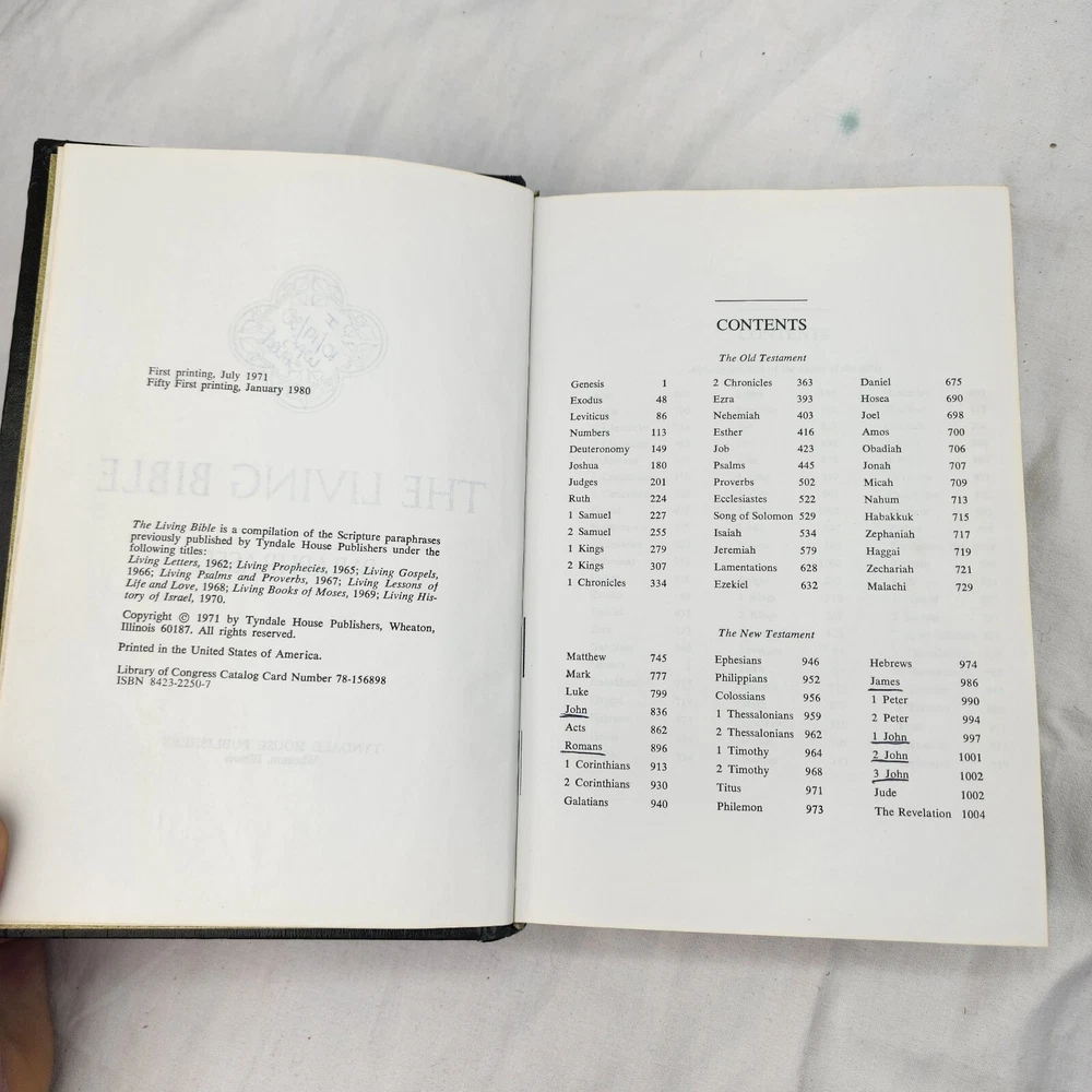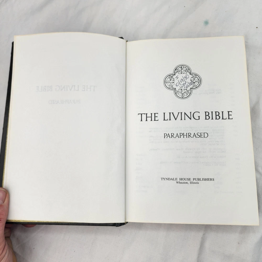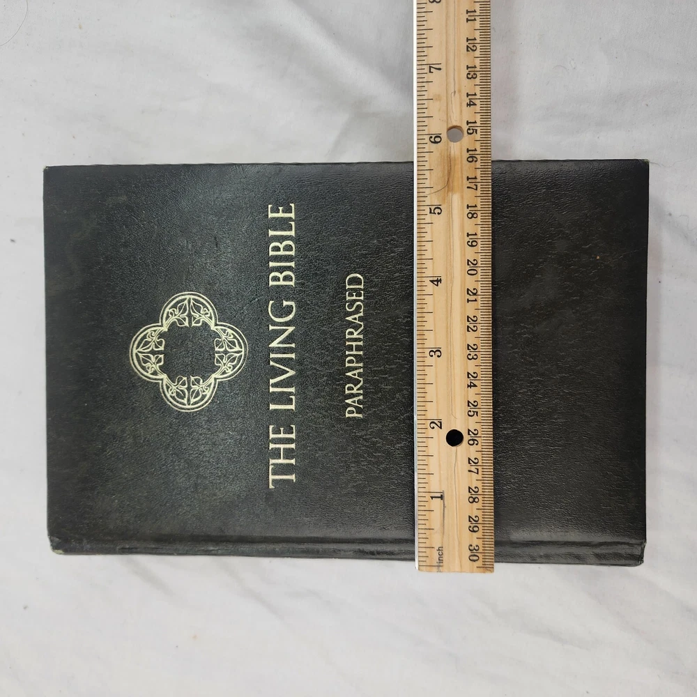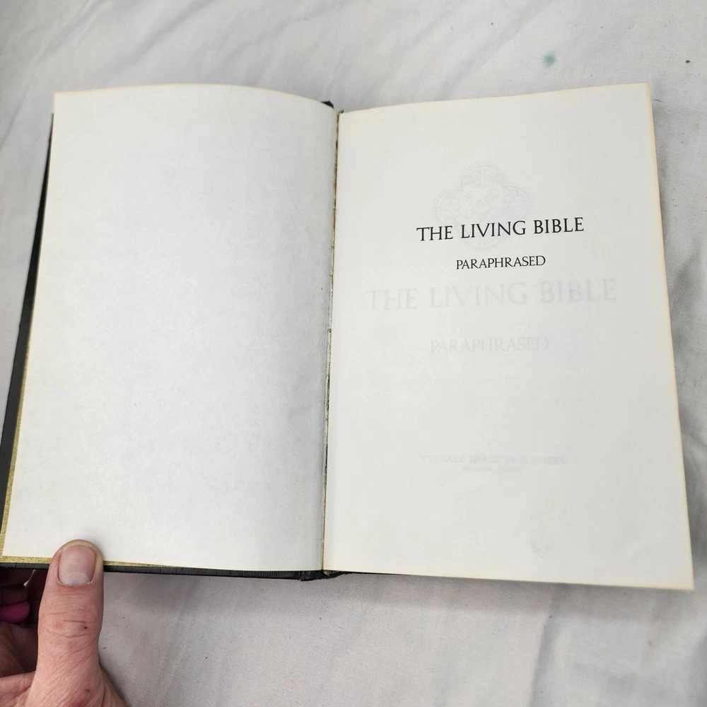 The Living Bible Paraphrased TYNDALE 1971 Hardcover Green Faux Leather Padded There are certain verses and lines underlined in various places as shown in the listing pics.