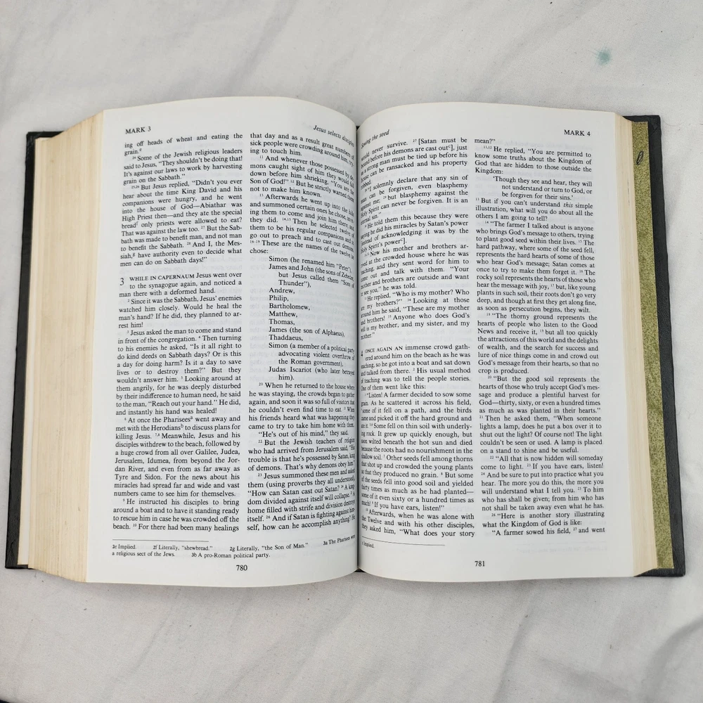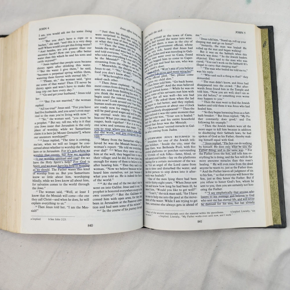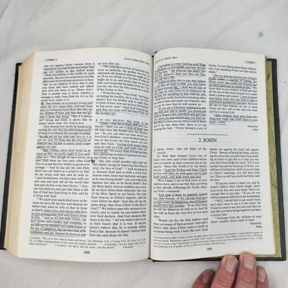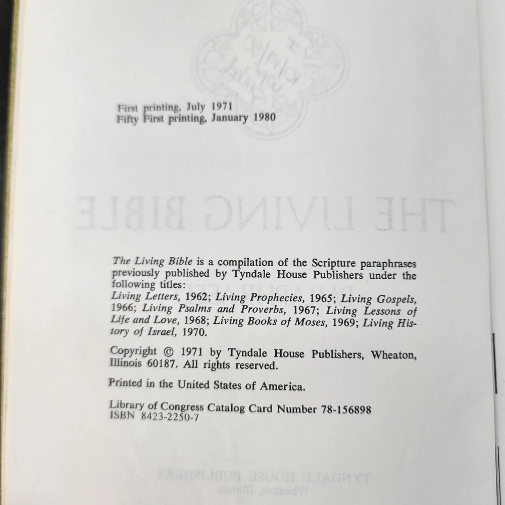 The Living Bible Paraphrased TYNDALE 1971 Hardcover Green Faux Leather Padded There are certain verses and lines underlined in various places as shown in the listing pics.